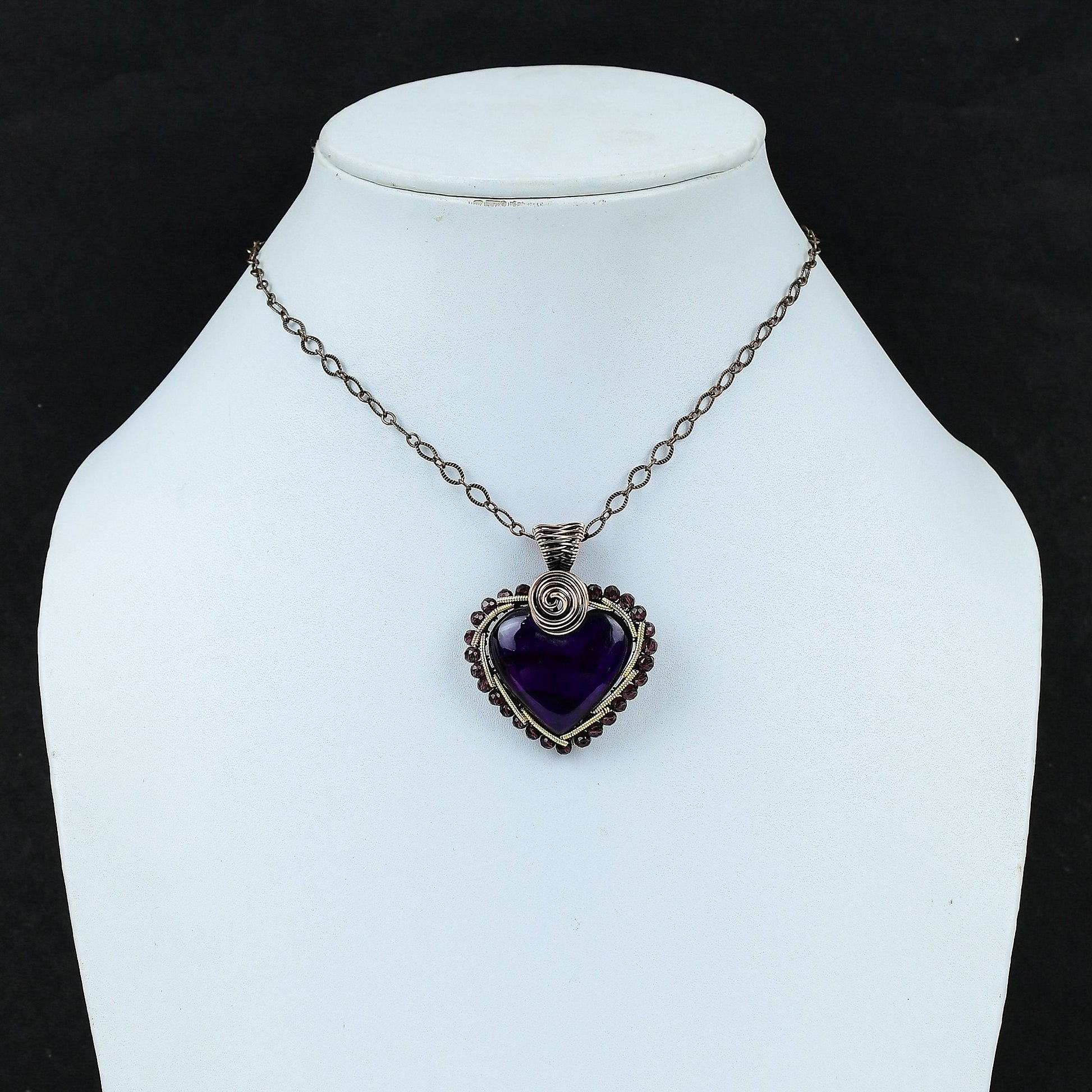 This exquisite piece features a stunning deep purple gemstone at its center, expertly encased in delicate wirework.