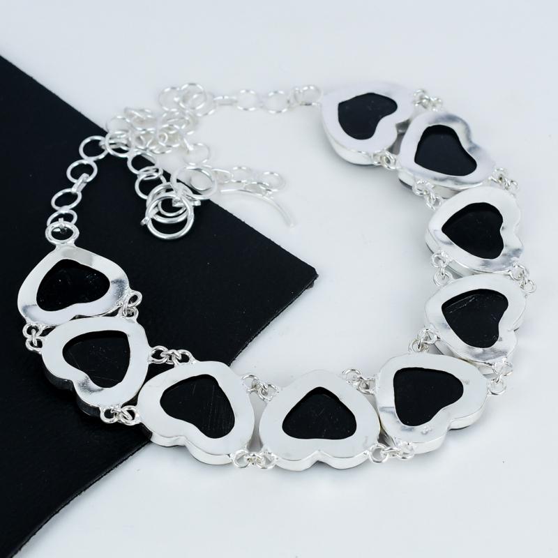 Handcrafted with precision, this stunning piece features iridescent heart-shaped stones set in a lustrous silver chain. Each stone shimmers with captivating hues, ensuring you stand out for all the right reasons.