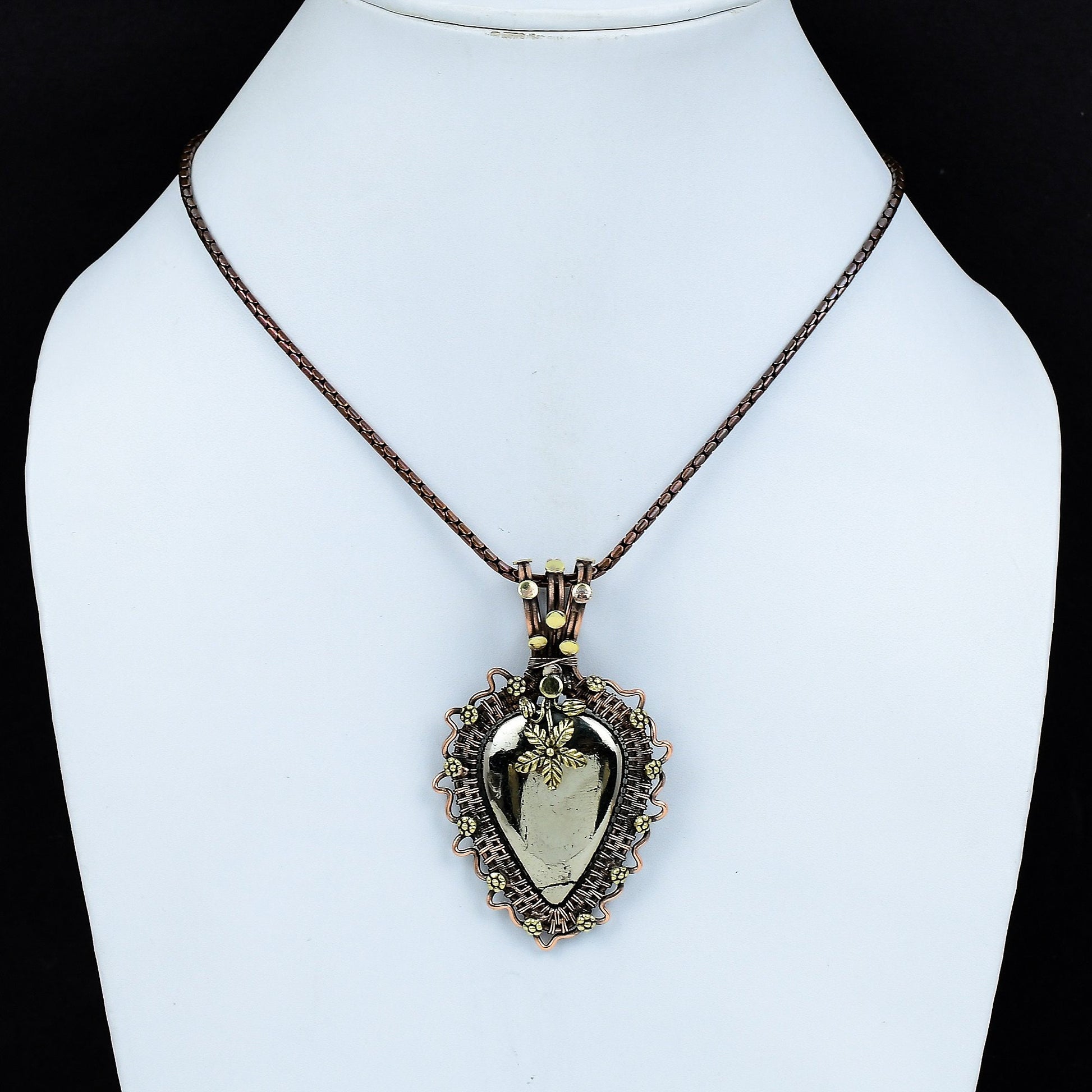 Design: This pendant features a beautifully polished centerpiece, bordered with delicate wirework that adds a touch of sophistication.