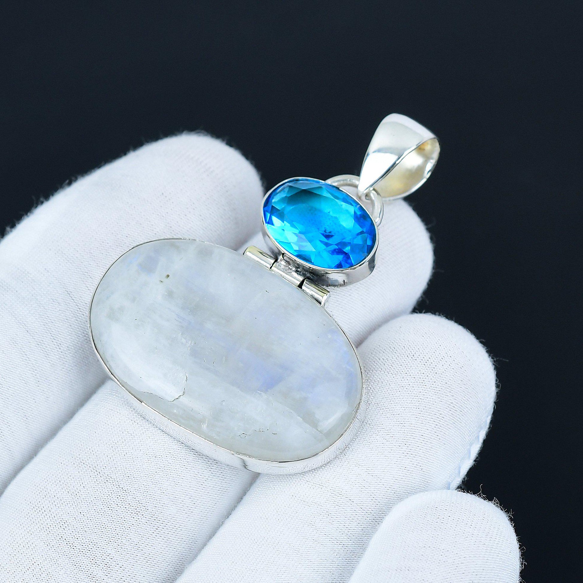 A captivating combination of a polished blue stone paired with a stunning white moonstone. The vibrant blue radiates a refreshing allure, while the moonstone adds a touch of ethereal beauty.
