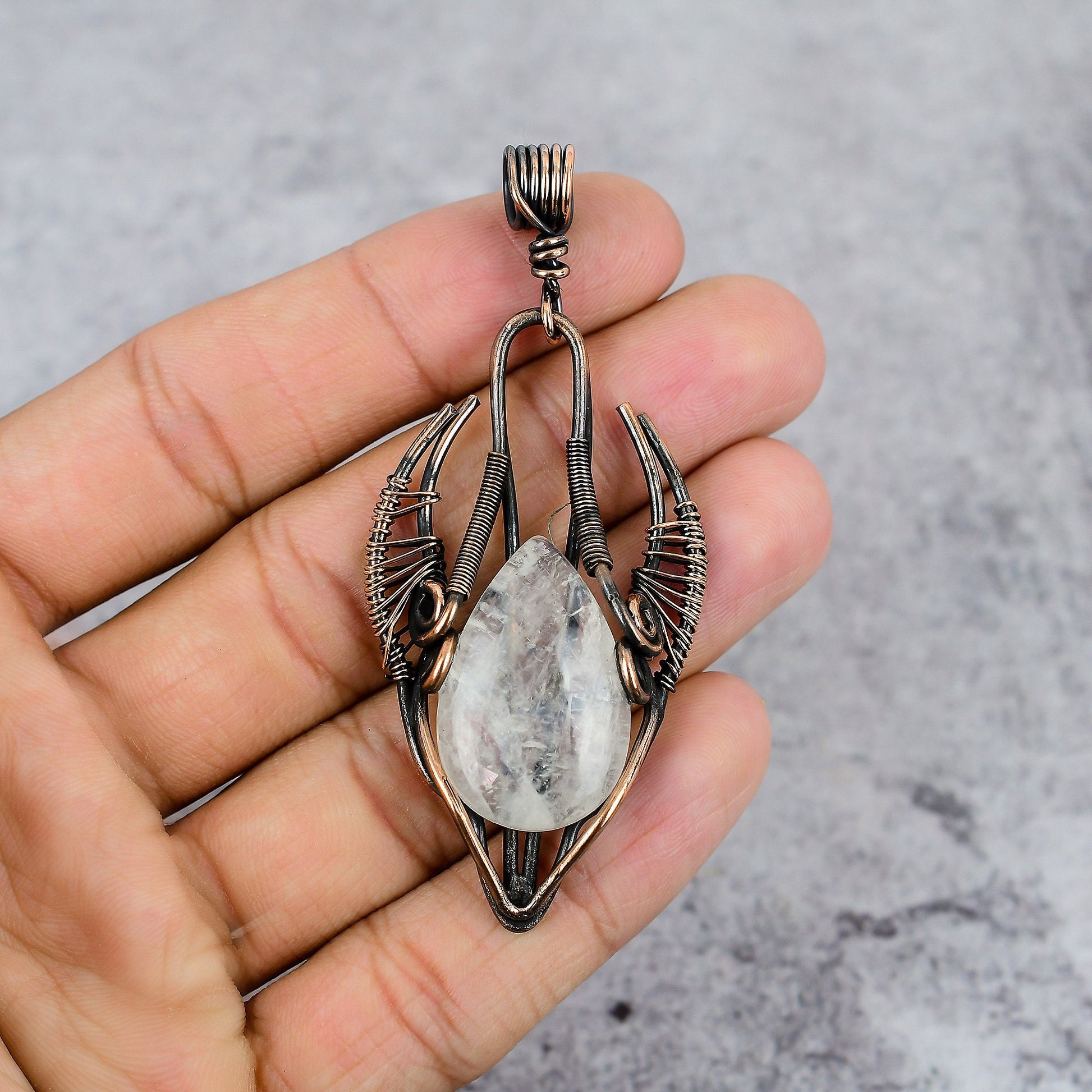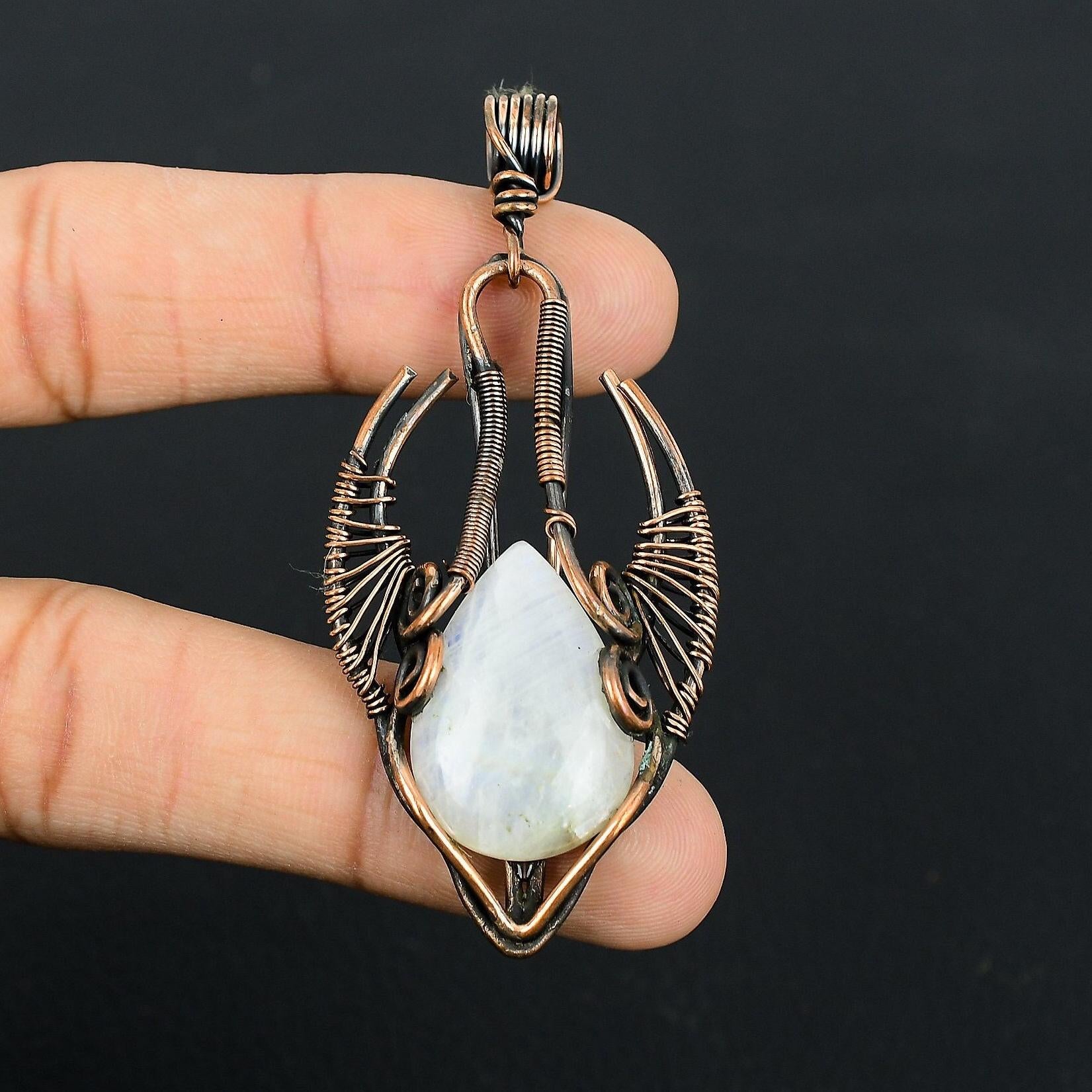 Discover the allure of artisanal craftsmanship with this exquisite wire-wrapped moonstone pendant.