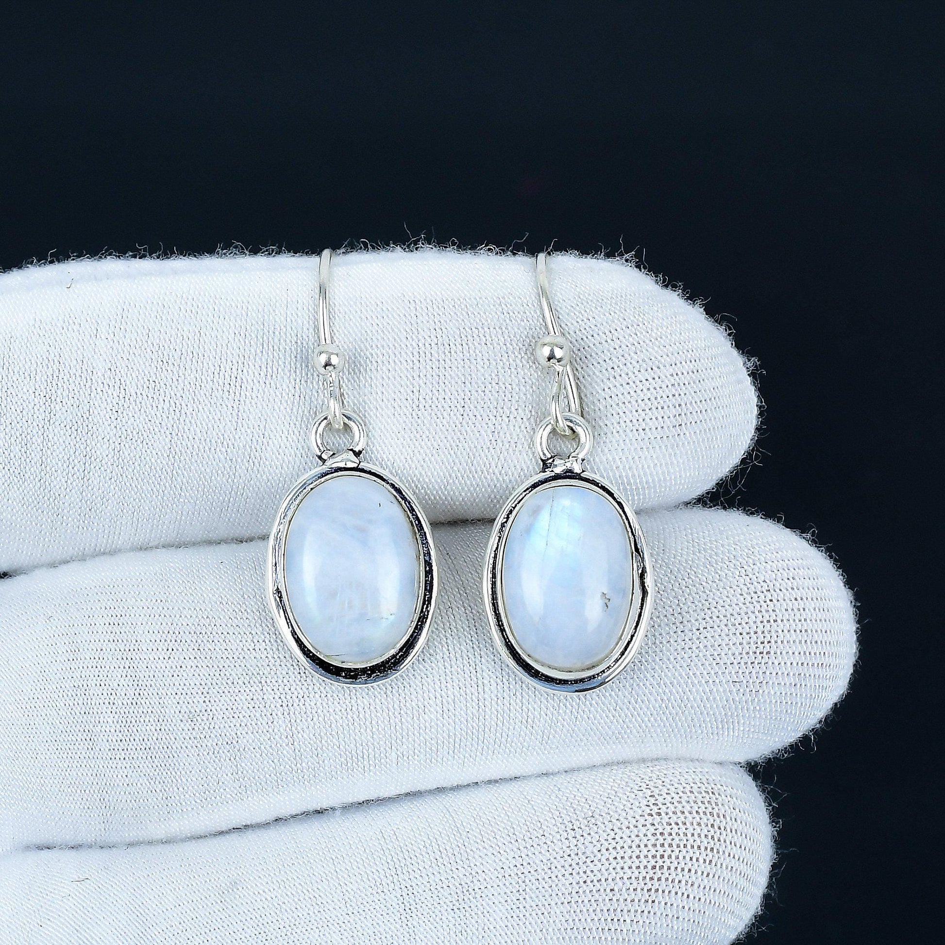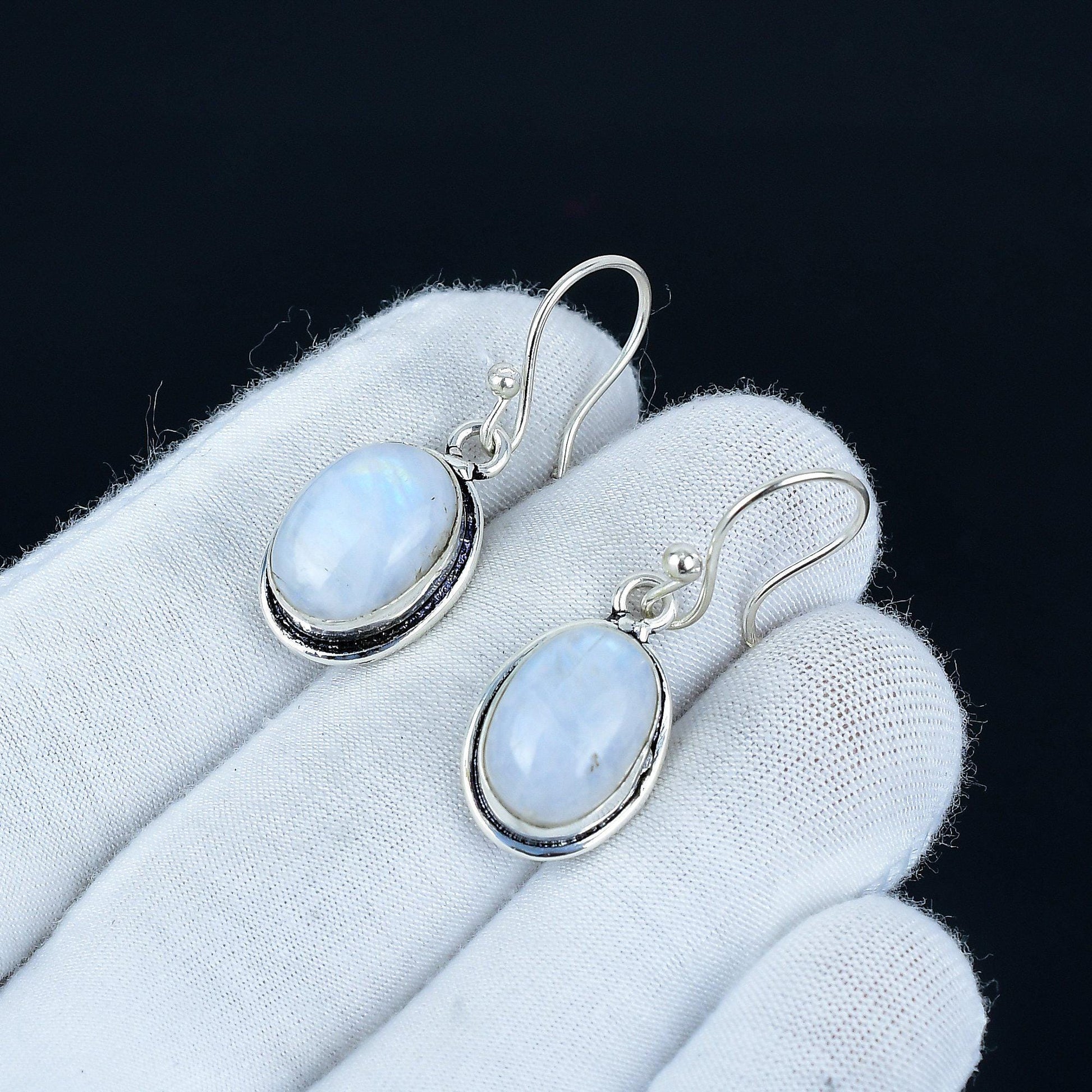 Handcrafted with precision, these earrings feature oval-cut moonstone gems, known for their enchanting iridescent glow, set in polished sterling silver.