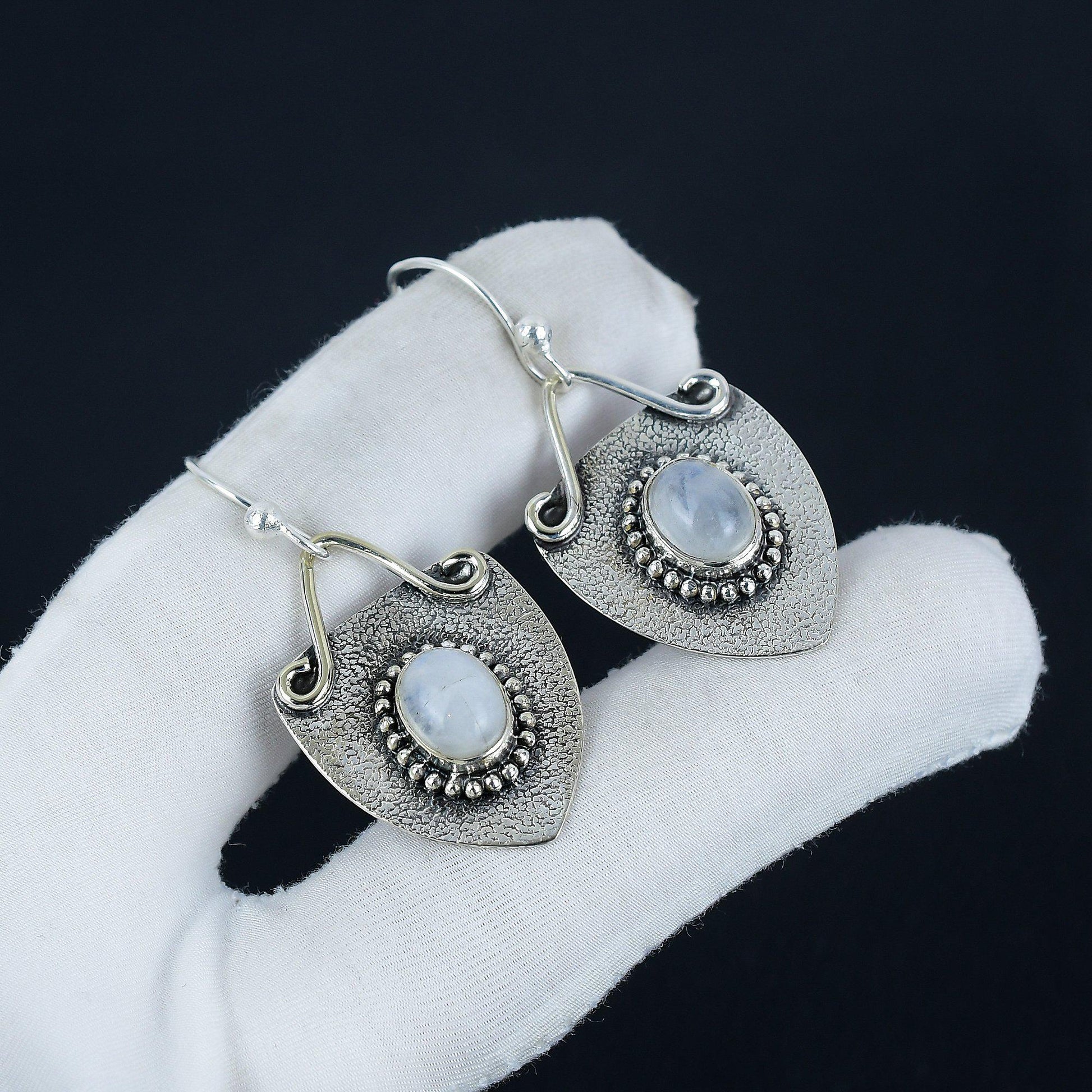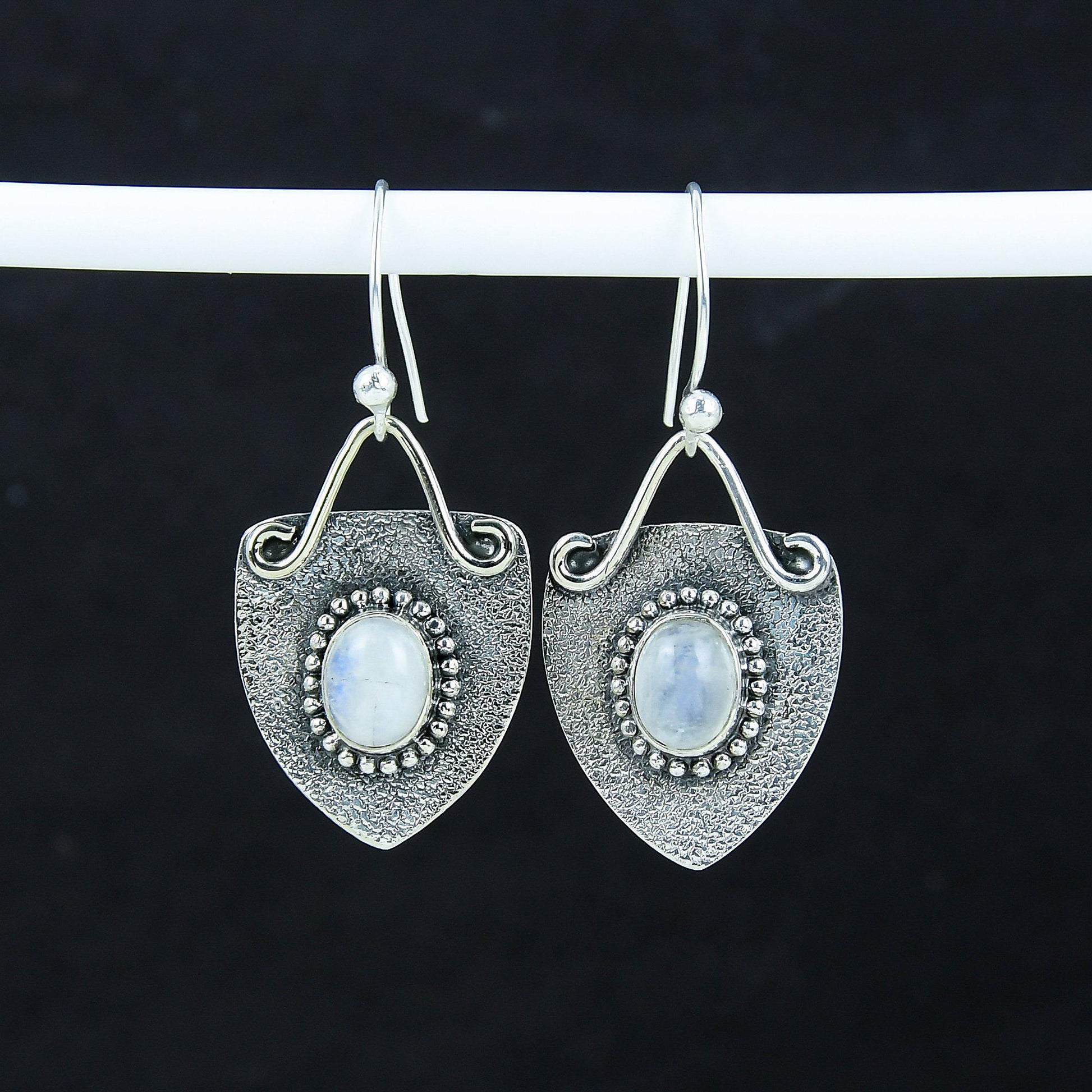 Discover timeless elegance with our handcrafted silver earrings. Each piece features a captivating oval centerpiece, framed with intricate beading and nestled within a textured silver structure.