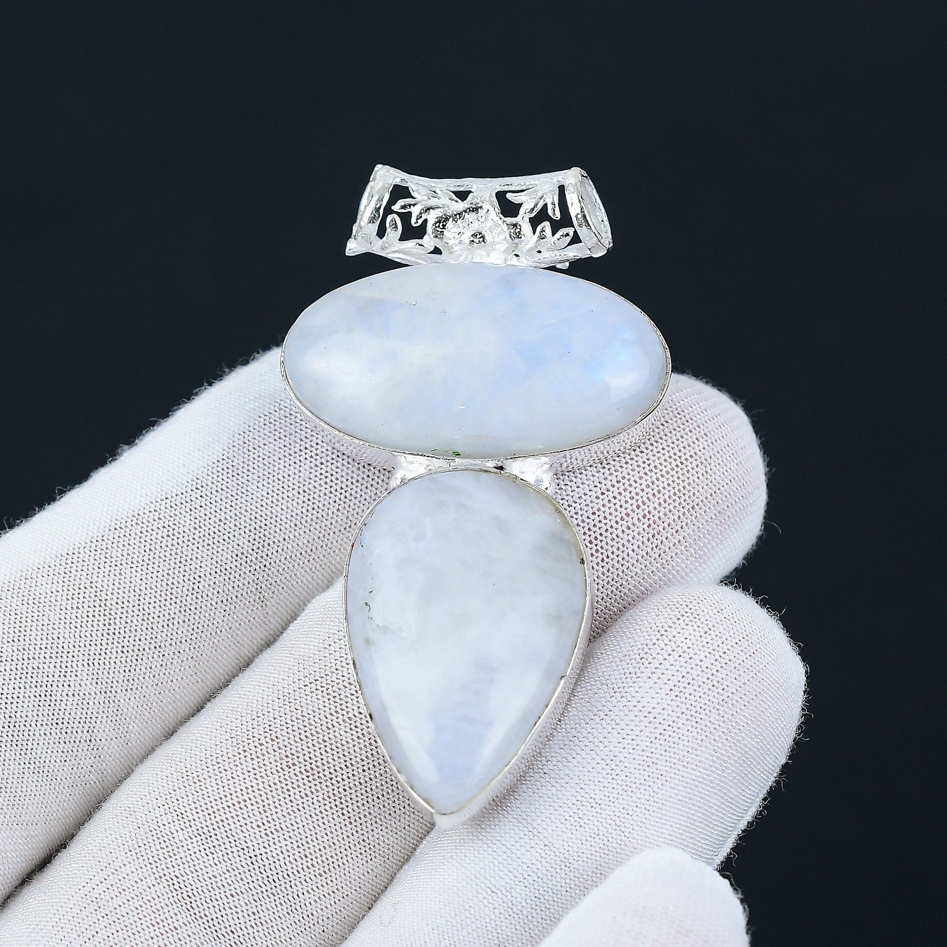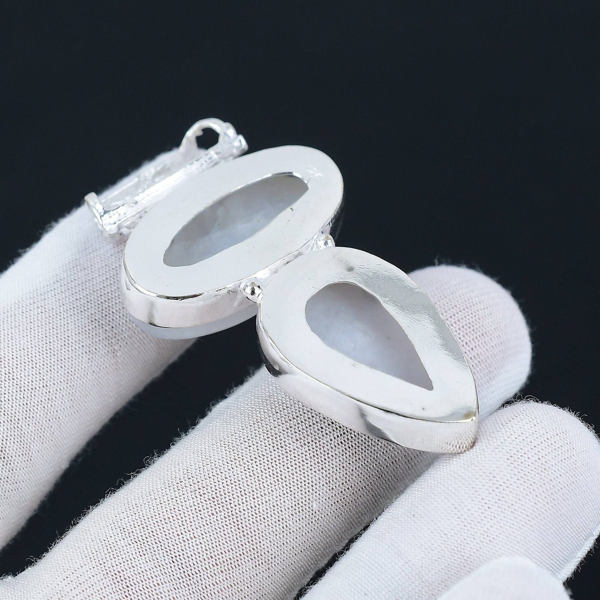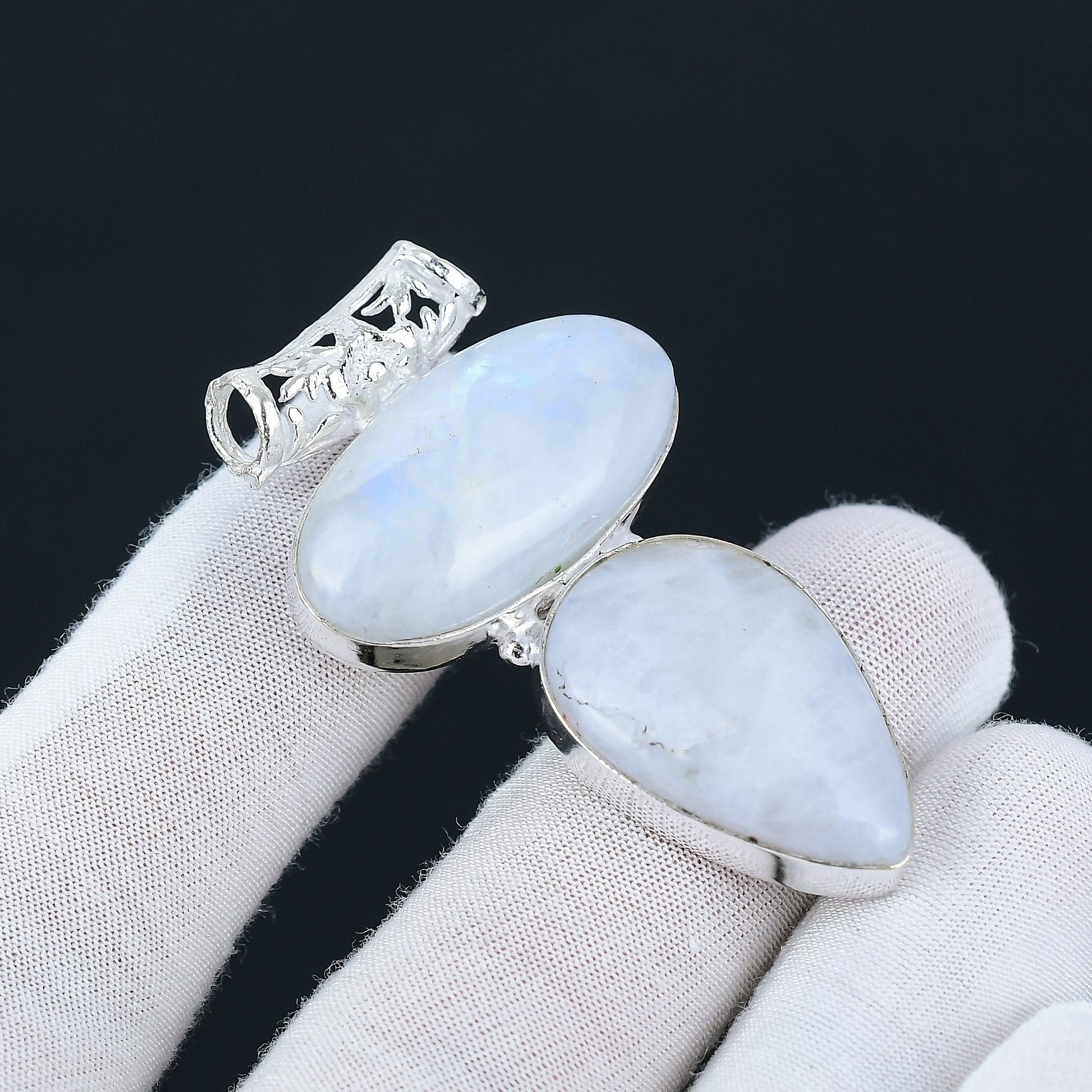 Embrace elegance with our exquisite Moonstone Pendant, a true testament to timeless beauty and elegance. This stunning piece features two captivating moonstone gems, expertly cut and polished to perfection.