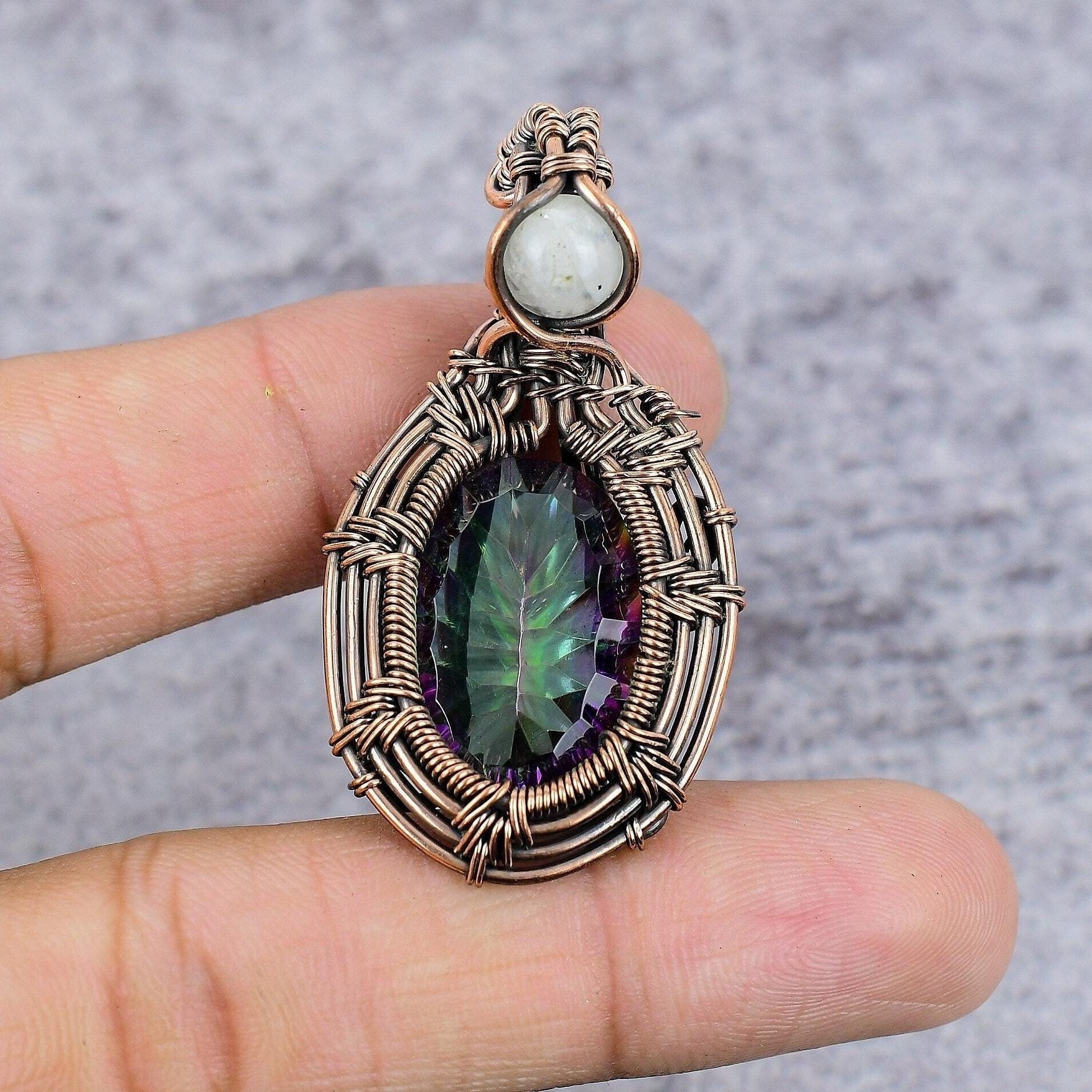 Experience the captivating allure of our handcrafted wire-wrapped pendant, a true testament to artisanal skill and elegance.
