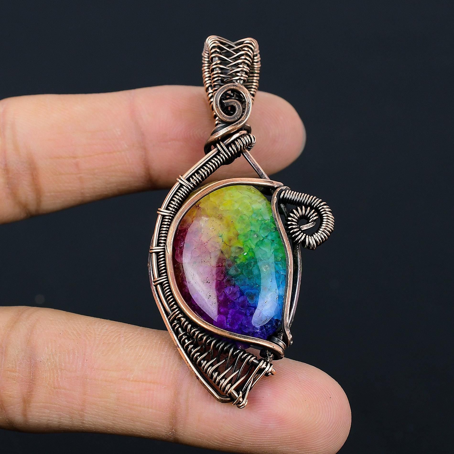 Discover the enchanting allure of our Handcrafted Rainbow Quartz Pendant, a true masterpiece of artisan jewelry.