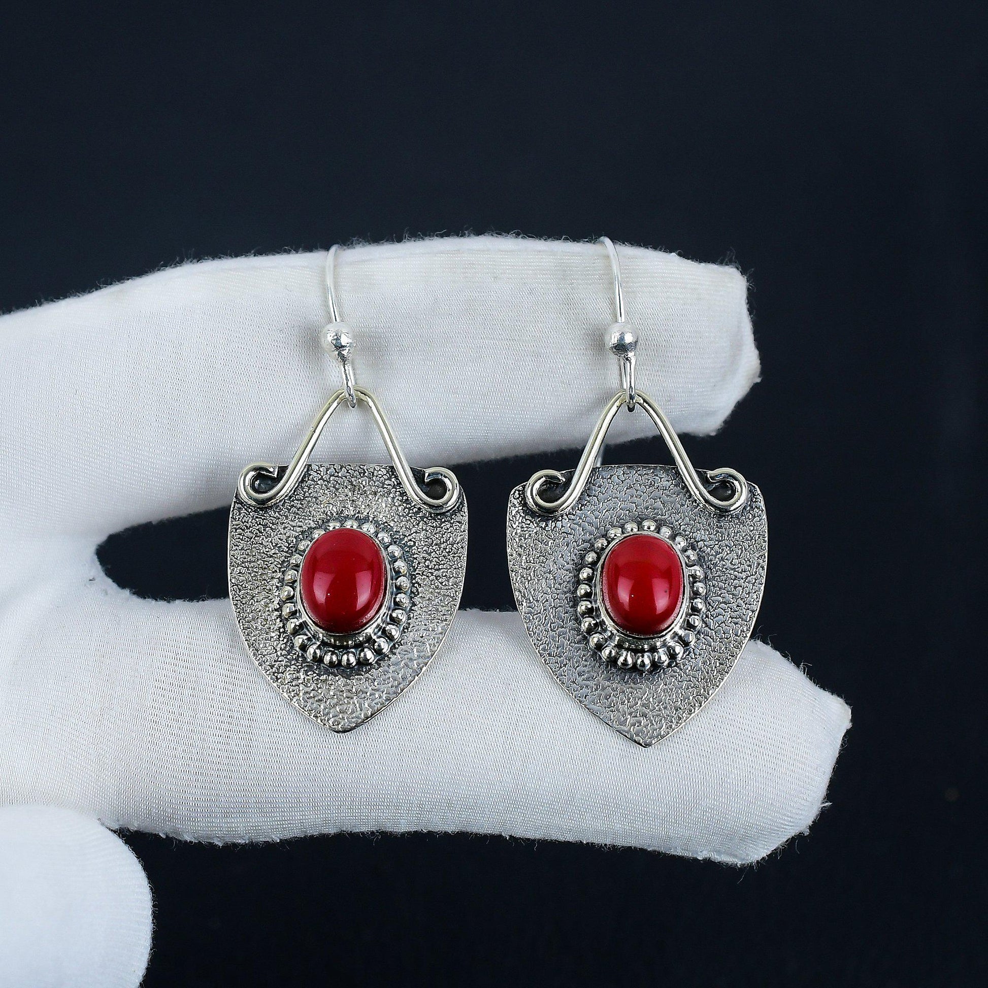 Capture the essence of timeless beauty with our exquisite Vintage Elegance Earrings. These earrings feature an intricately textured silver base, reminiscent of classic craftsmanship, which perfectly complements the vibrant, red gemstone at the center.