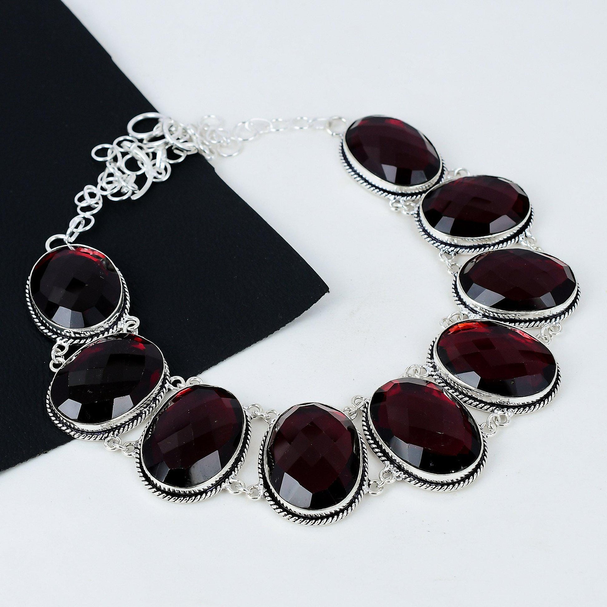 Elevate your style with this stunning garnet statement necklace, designed to capture attention and admiration.