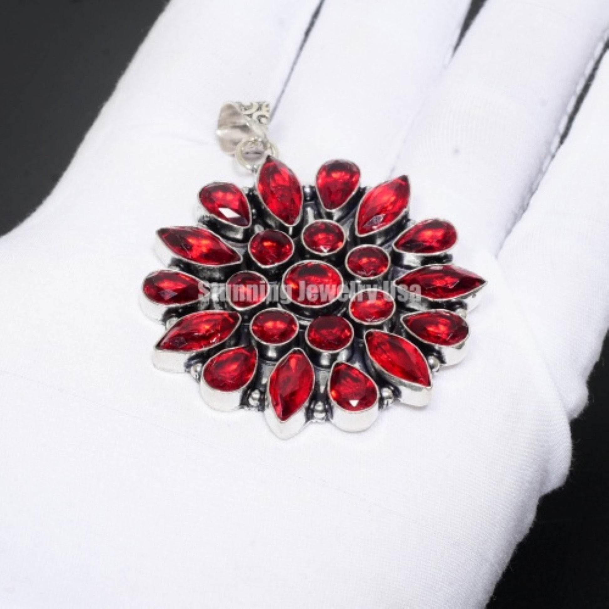 Discover elegance redefined with our exquisite floral-inspired red gemstone pendant.