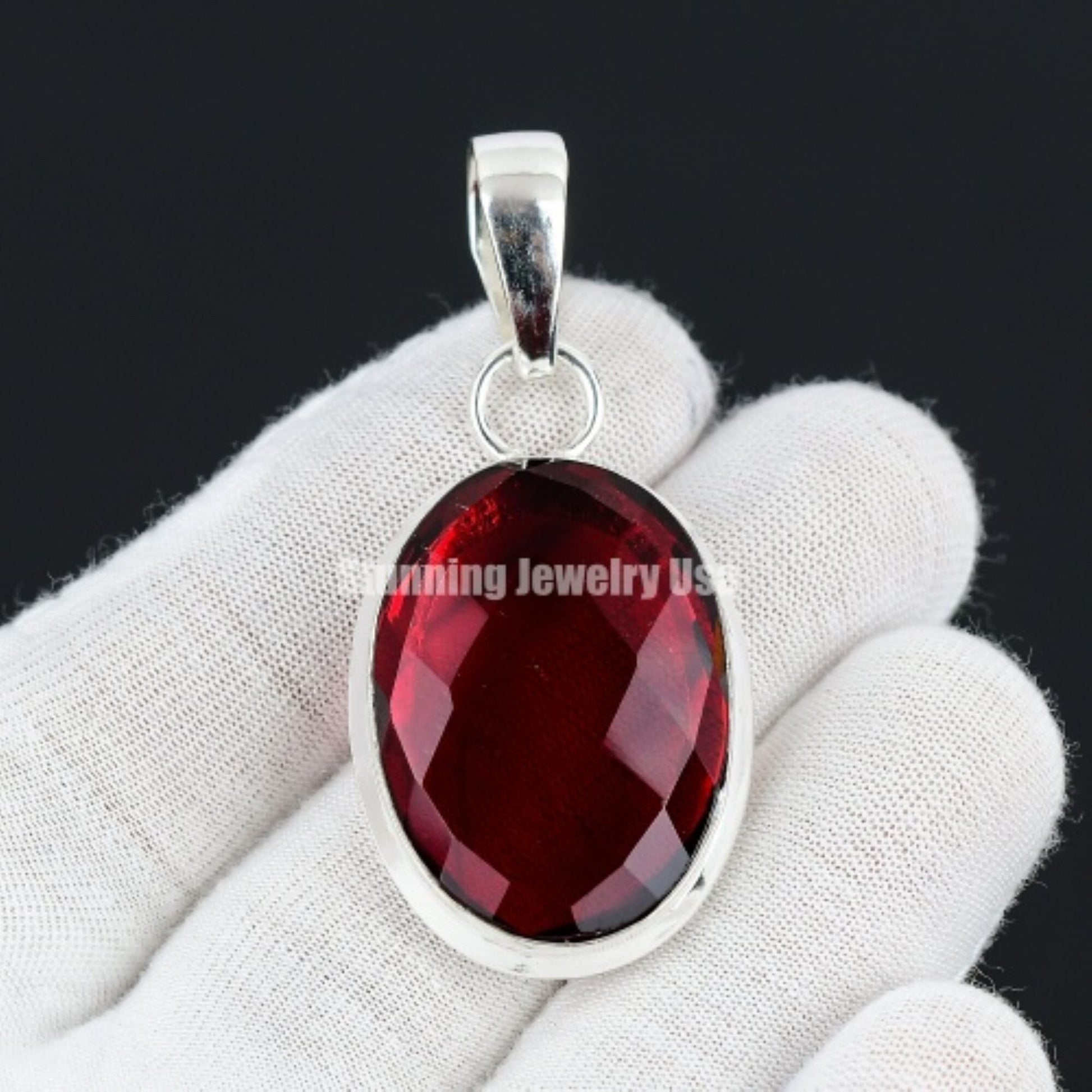 Crafted with precision, this pendant showcases a stunning deep red gemstone, encased in a sleek and durable silver setting, making it ideal for any occasion.