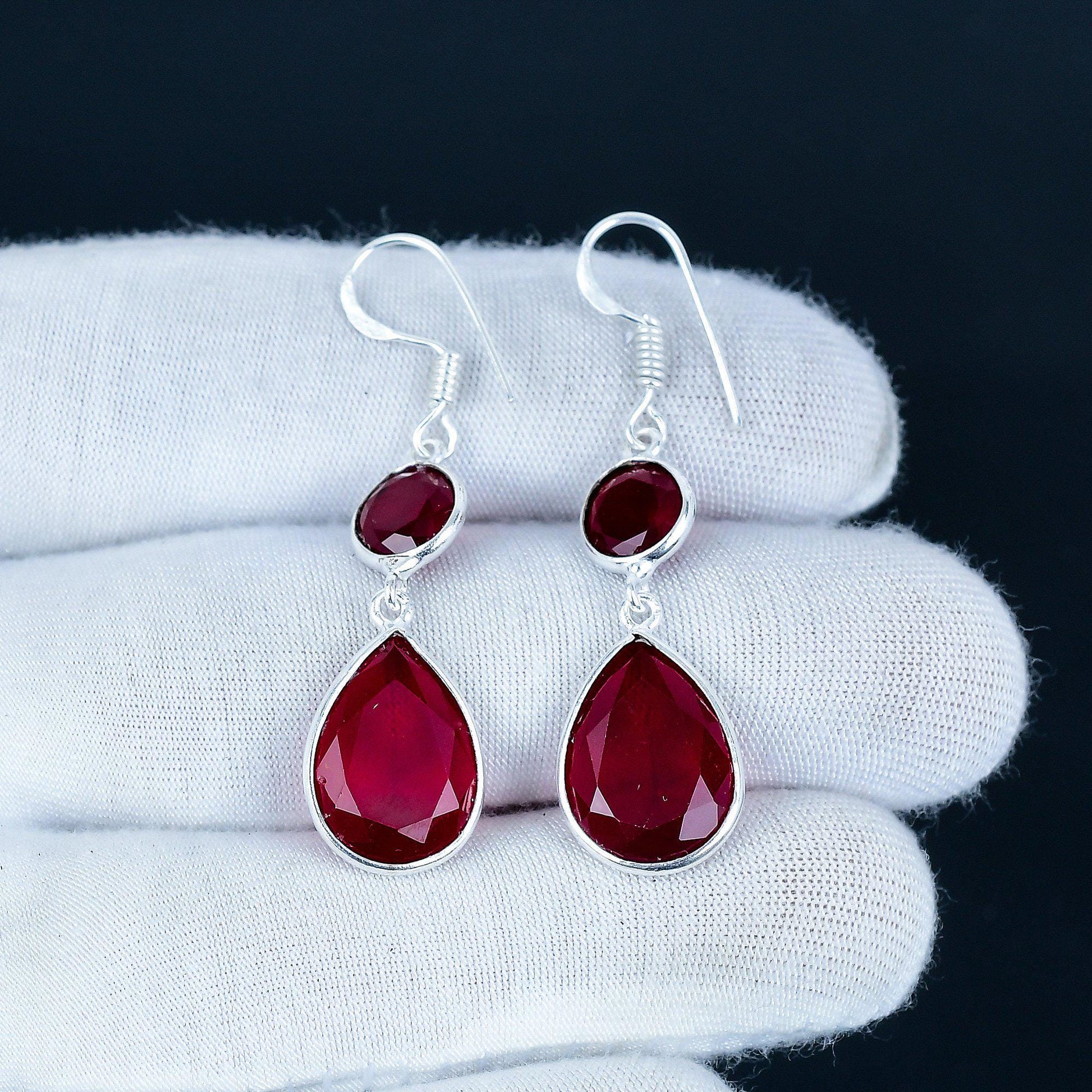 Enhance your elegance with these stunning deep red teardrop earrings. Each exquisite ruby-colored stone is crafted with precision, creating a striking balance of sophistication and vibrant allure.