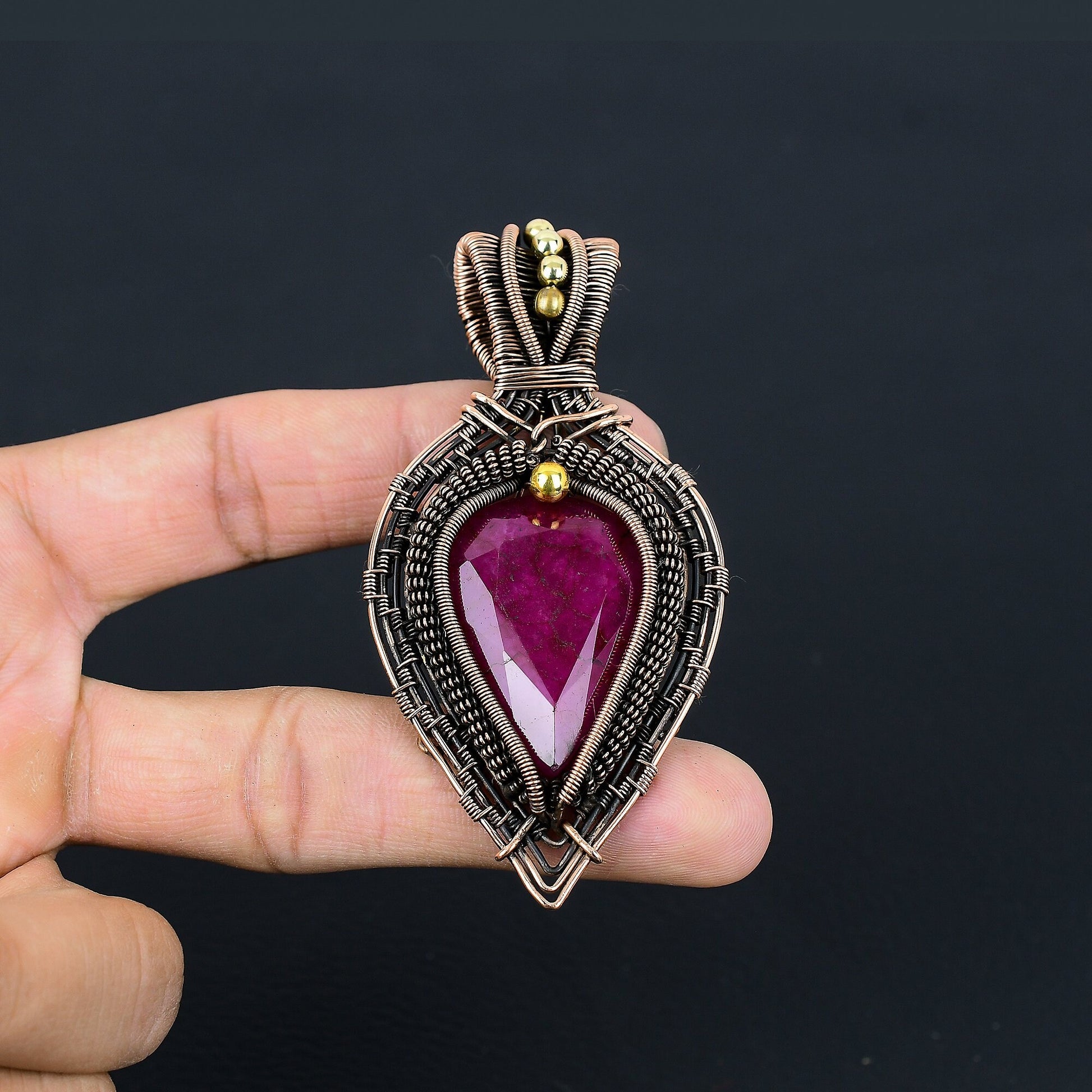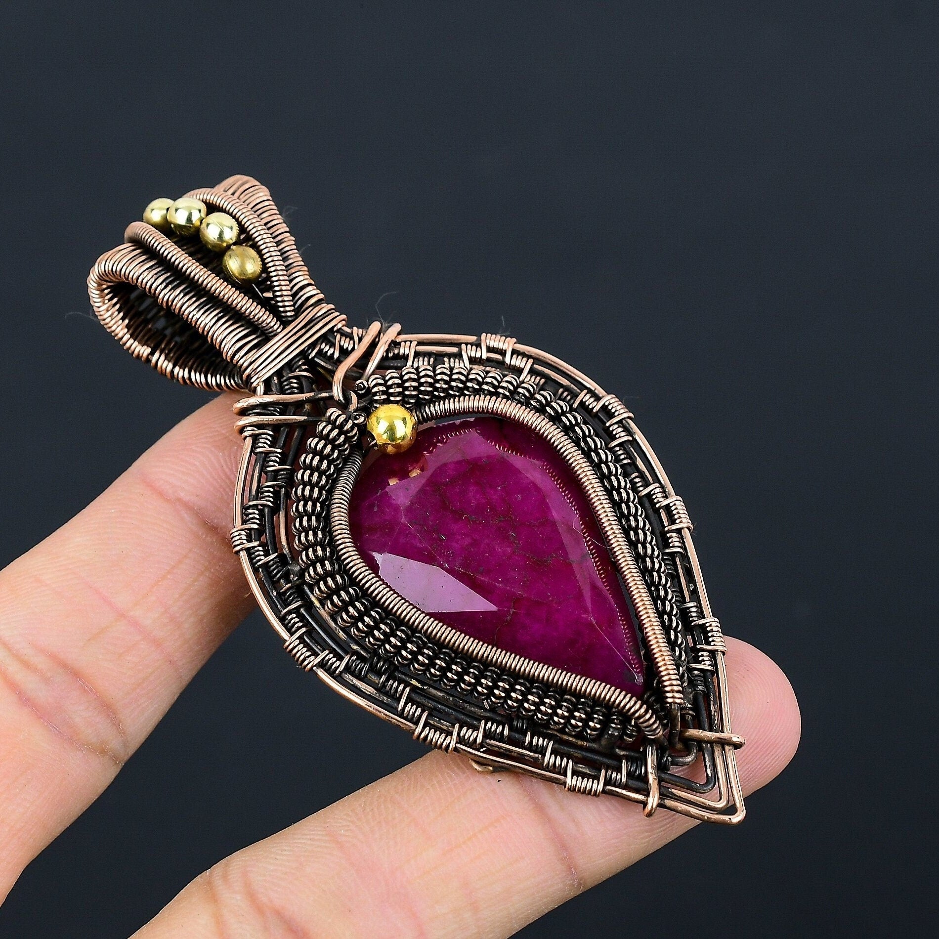 Artisan Design: Skillfully woven copper wire framework highlights the natural beauty of the ruby, adding a touch of elegance to any ensemble.