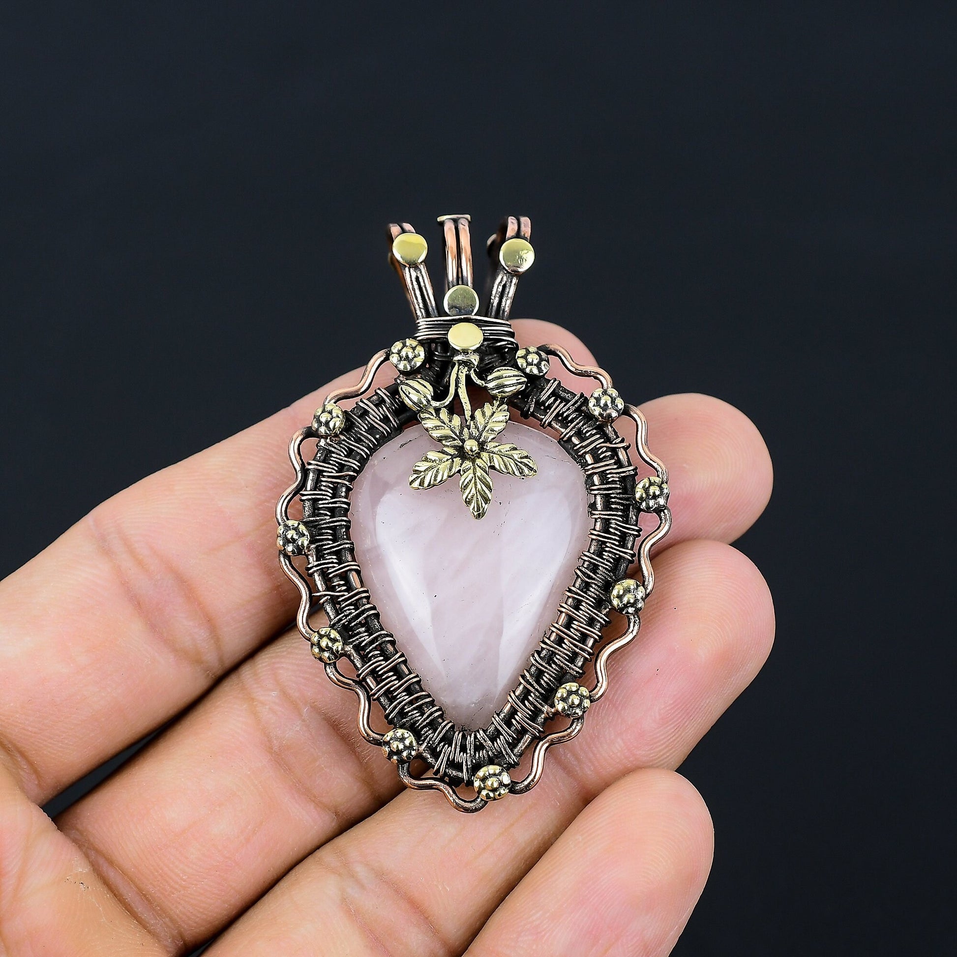 Introducing our exquisite handcrafted pendant, a true masterpiece that embodies elegance and artistry. This stunning piece features a delicate wire-wrapped design, intricately crafted to highlight the central rose quartz gemstone.
