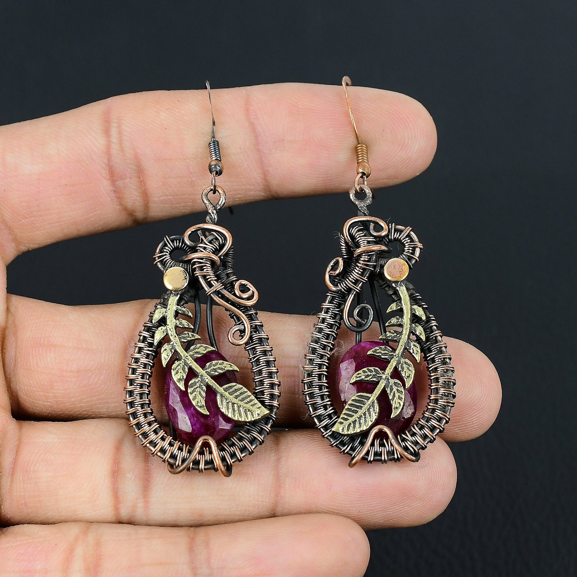 Introducing our exquisite handcrafted earrings, where modern elegance meets timeless artistry. Each earring features an intricate wire design that gracefully encases a deep red gemstone, creating a stunning focal point that captures the eye and captivates the soul.