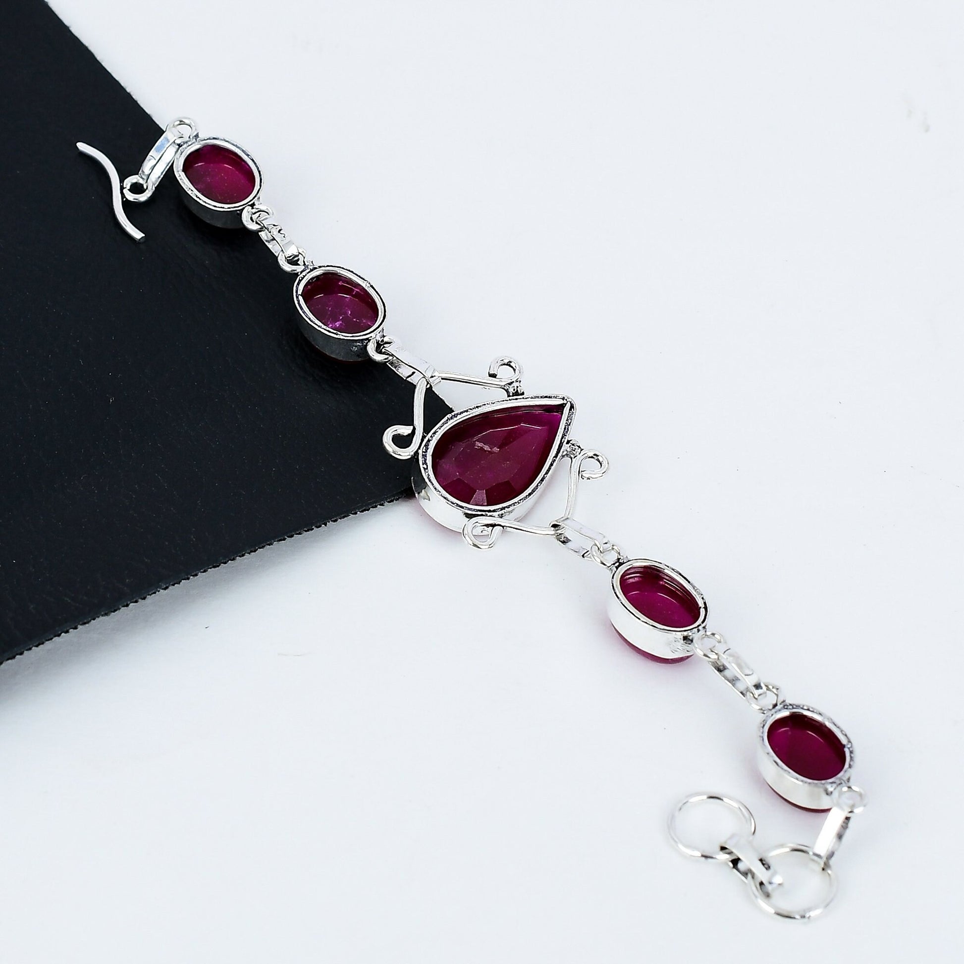 Enhance your elegance with our exquisite Silver & Ruby Bracelet, a perfect blend of timeless design and luxurious craftsmanship.
