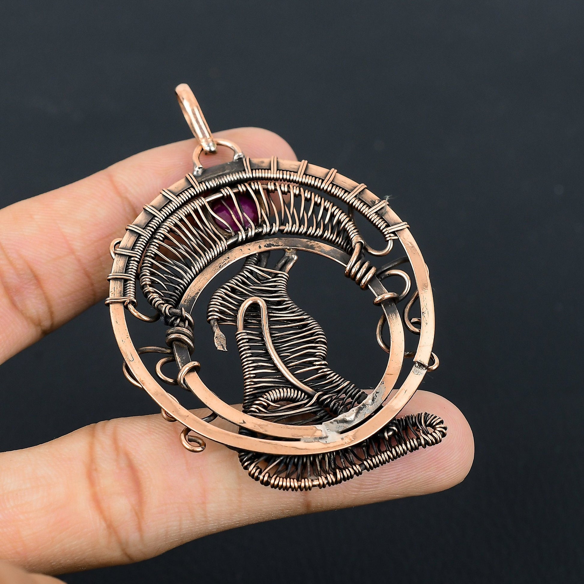 Embrace elegance with this exquisite hand-crafted copper wire pendant that beautifully captures the allure of intricate wirework.