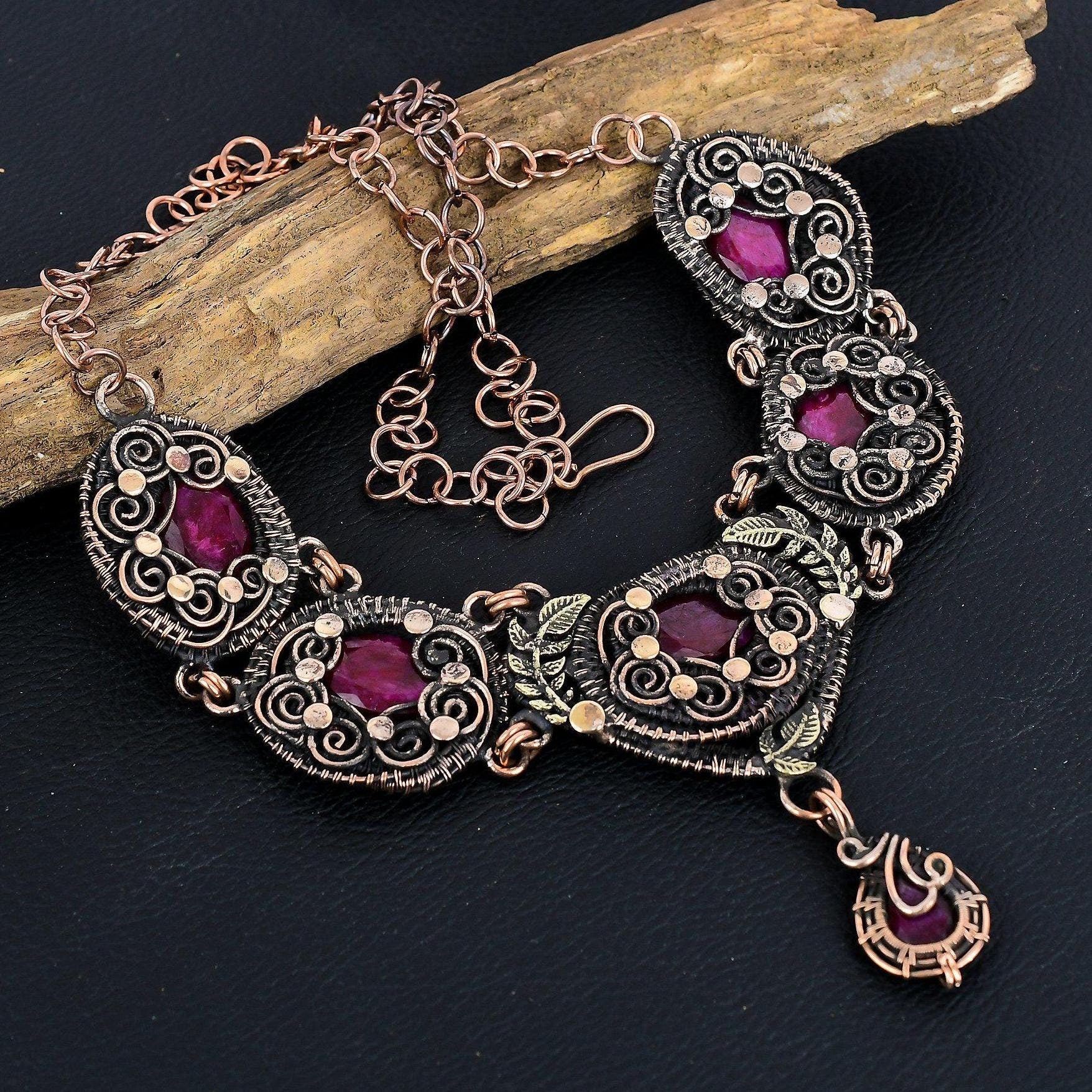 Materials: Expertly crafted using copper for a rich, warm tone, enhanced with deep garnet stones to add a burst of color.