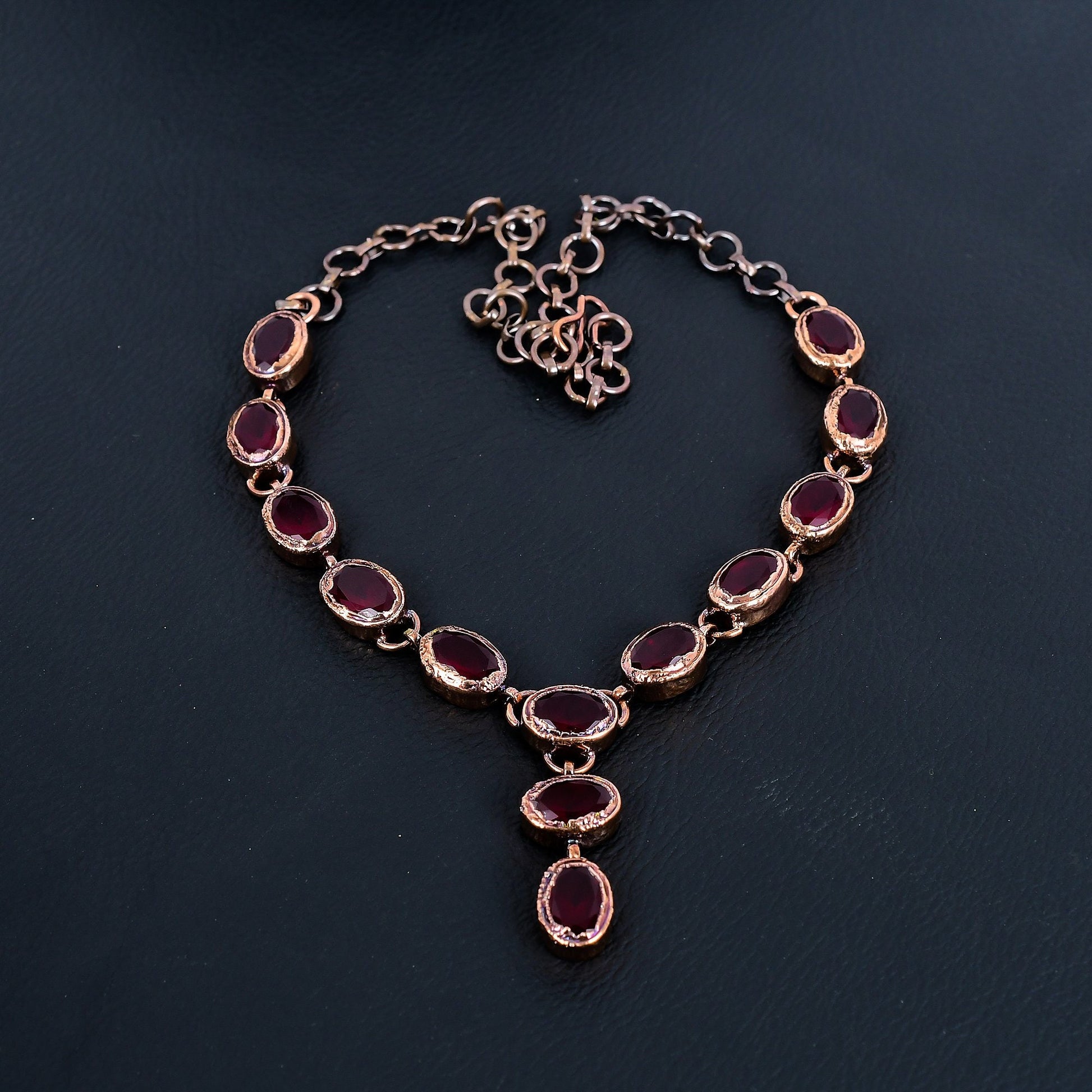 Experience elegance with our exquisite Garnet Necklace, meticulously crafted to enhance your sophisticated style.
