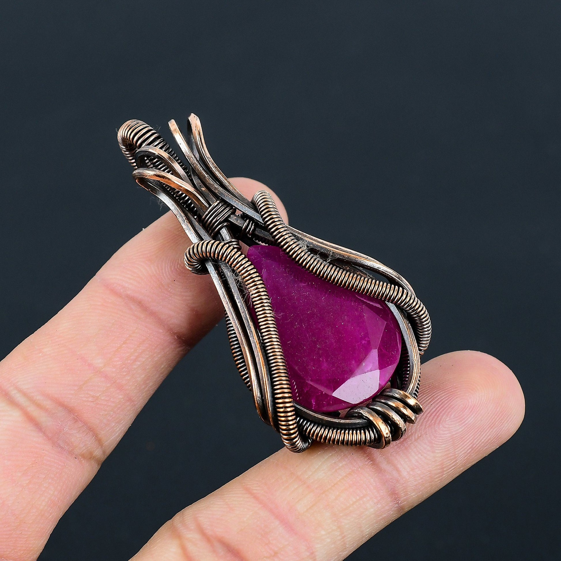 Experience the elegance and sophistication of our stunning handcrafted pendant, featuring a mesmerizing deep magenta gemstone.
