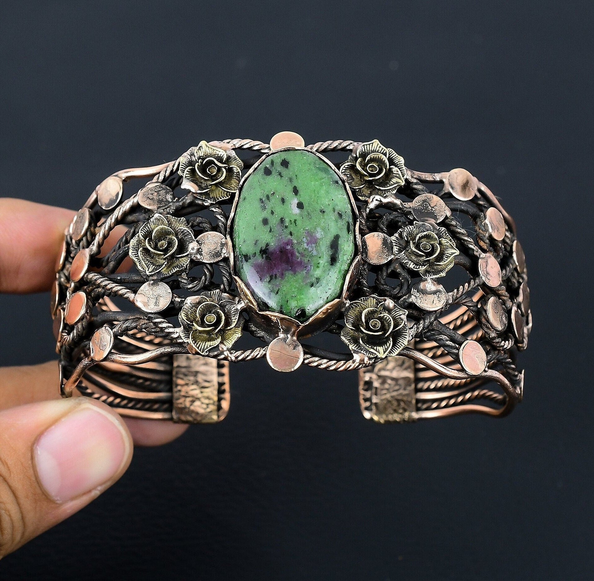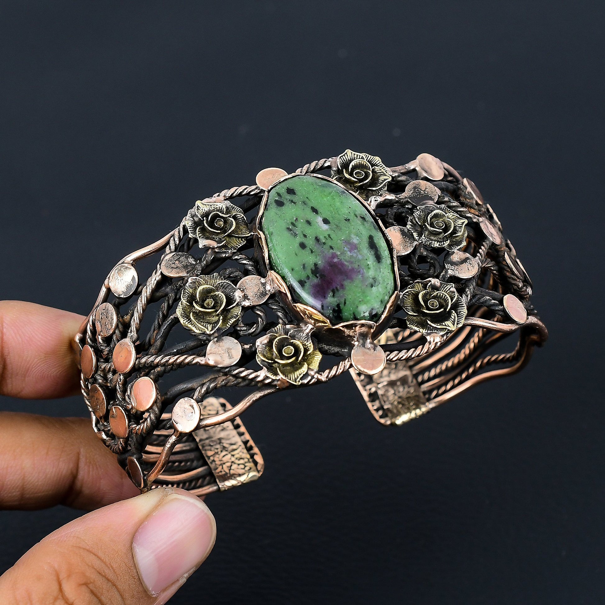 Embrace the allure of unique craftsmanship and let your style bloom with this beautiful floral cuff bracelet.