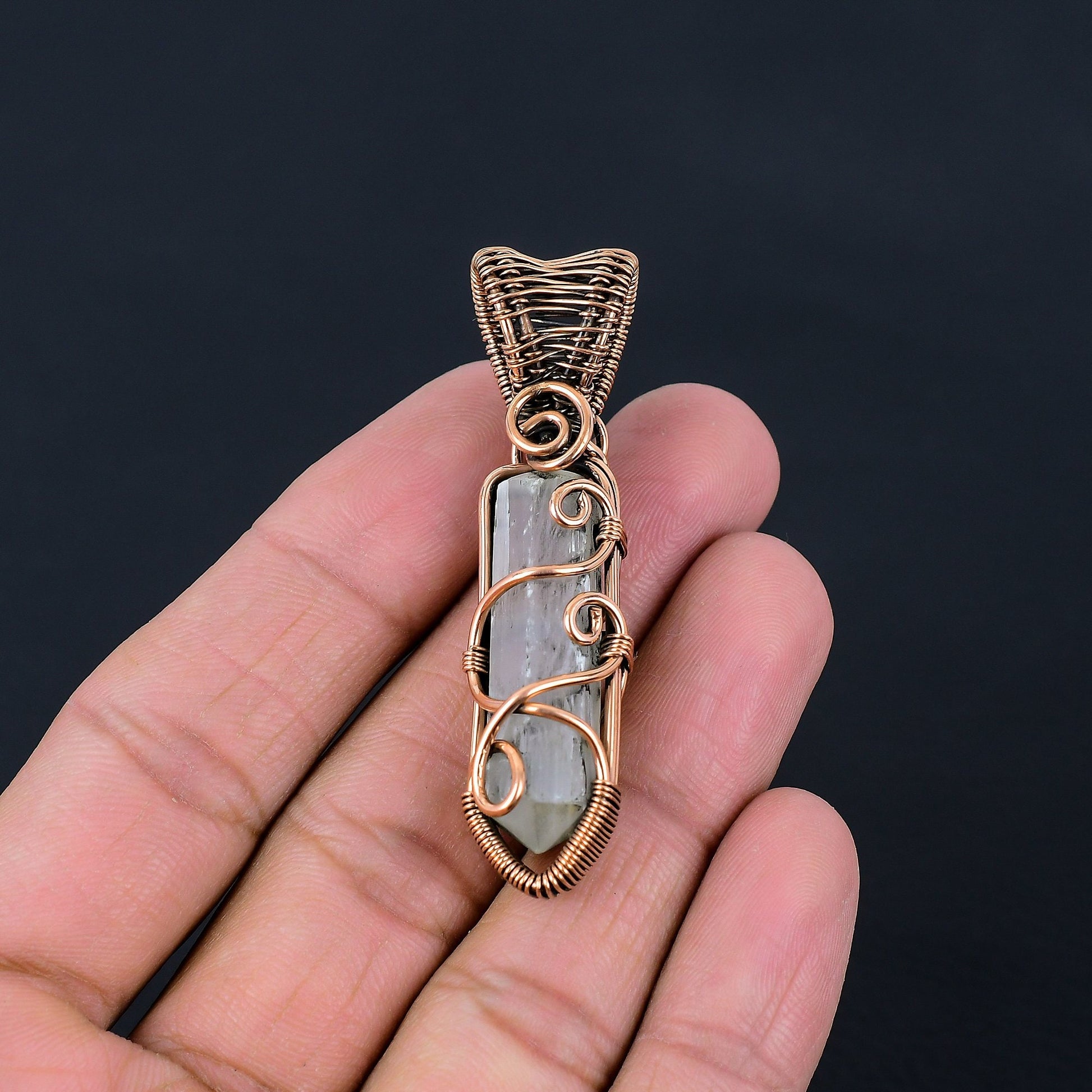Discover the exquisite craftsmanship of our Handcrafted Copper Wire Wrapped Quartz Pendant, a perfect blend of artistry and elegance.