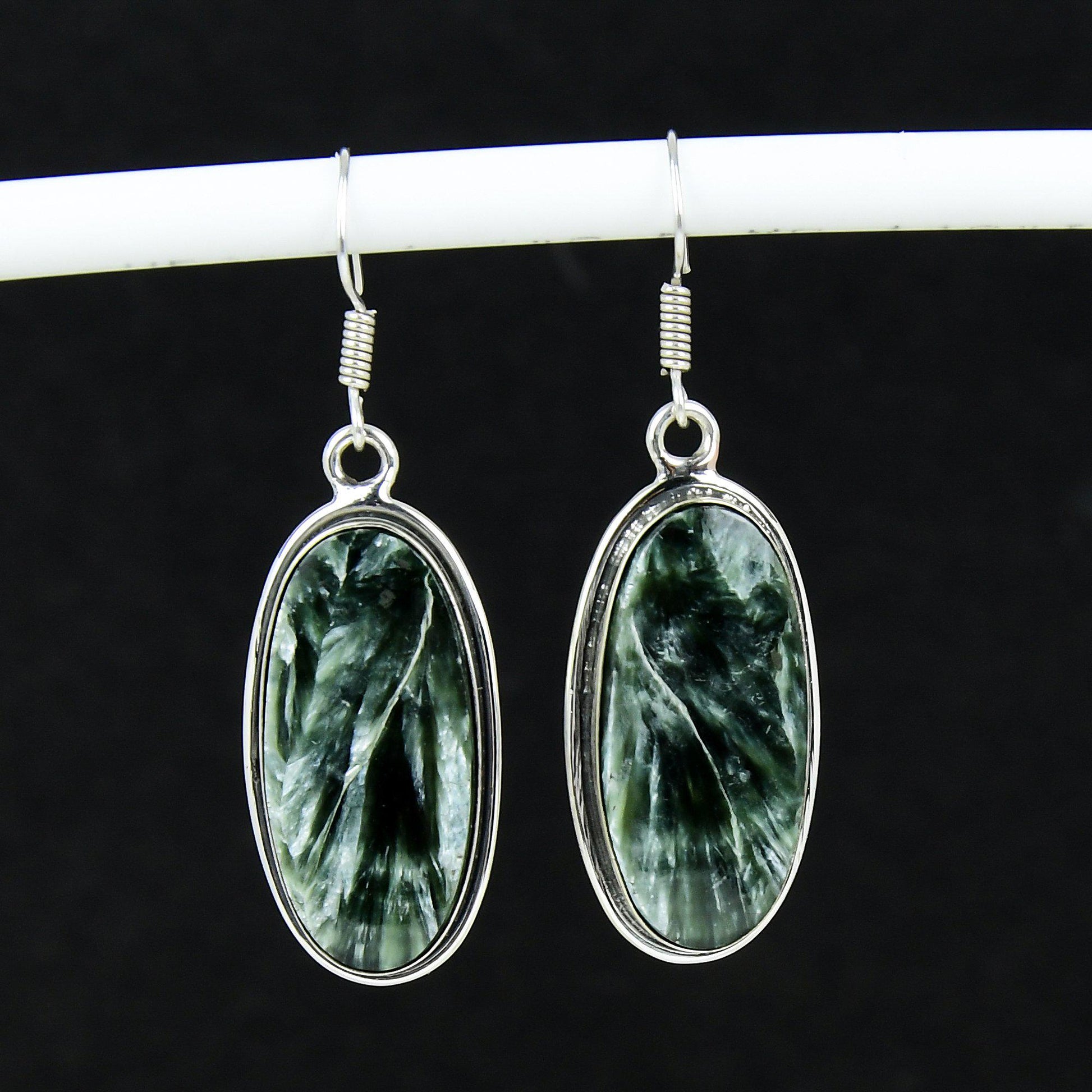 Elegant and timeless, these handcrafted earrings feature stunning green stones set in sterling silver.