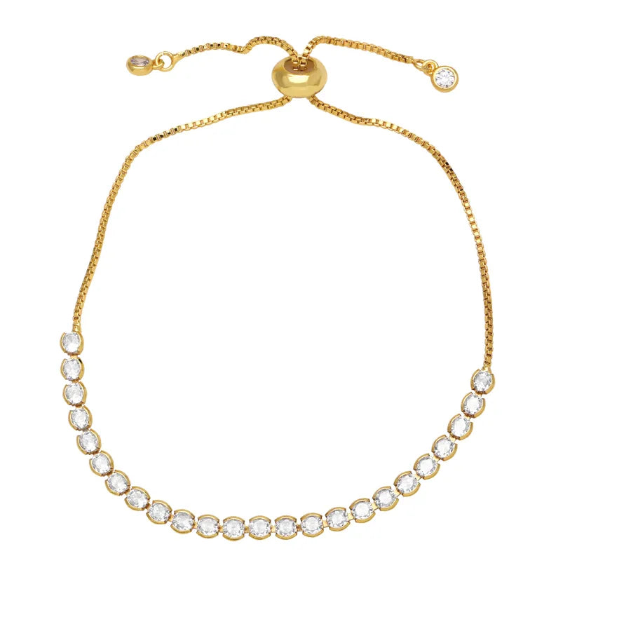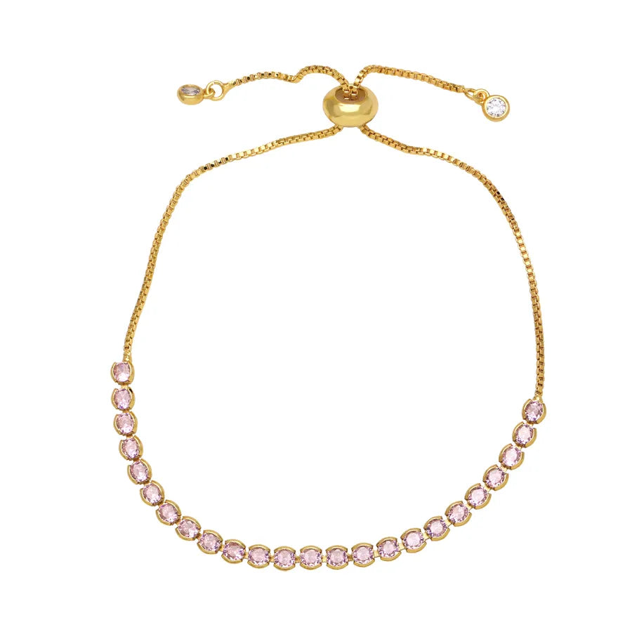 Each bracelet features a sleek gold-tone band adorned with vibrant, round gemstones that shimmer in the light, creating a dazzling display of colors.