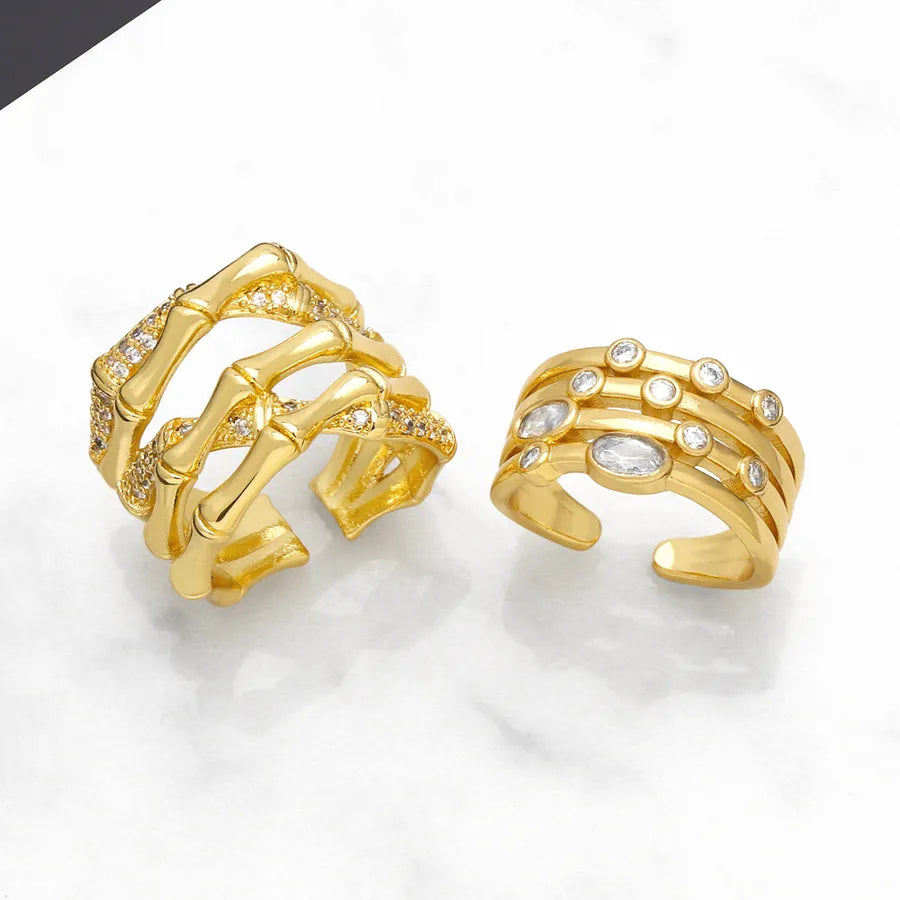 Elevate your style with this exquisite gold ring set, a masterful blend of elegance and modern design. Perfect for any occasion, this set features: