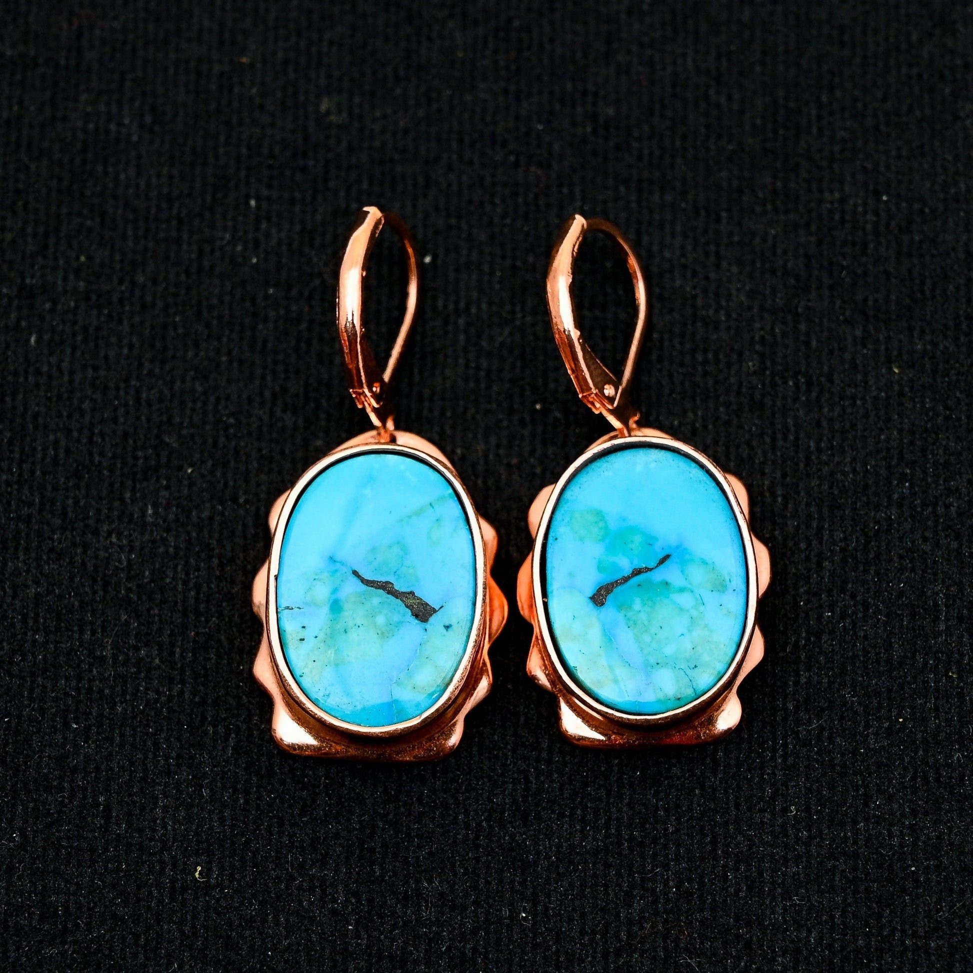Crafted with precision, the stunning oval turquoise stones are complemented by an elegant rose gold setting, creating a captivating contrast that catches the eye.