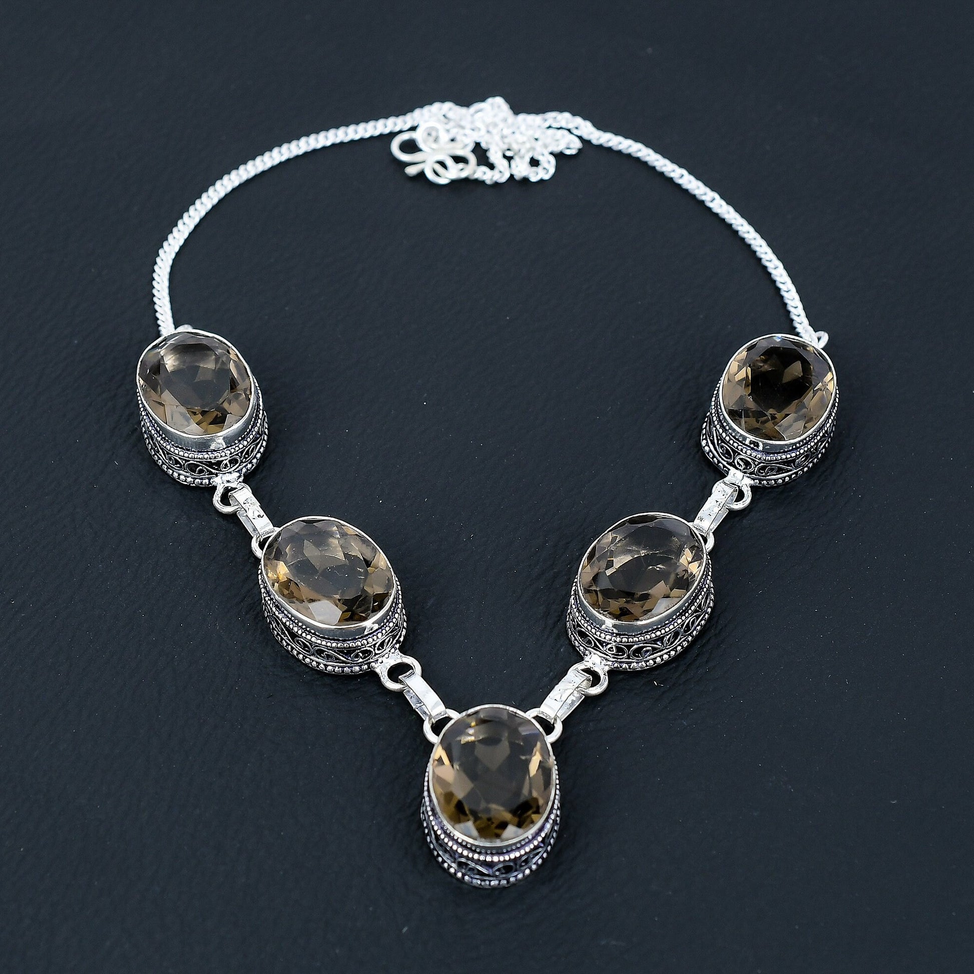 Discover the elegance and sophistication of our exquisite Smoky Quartz and Silver Necklace.