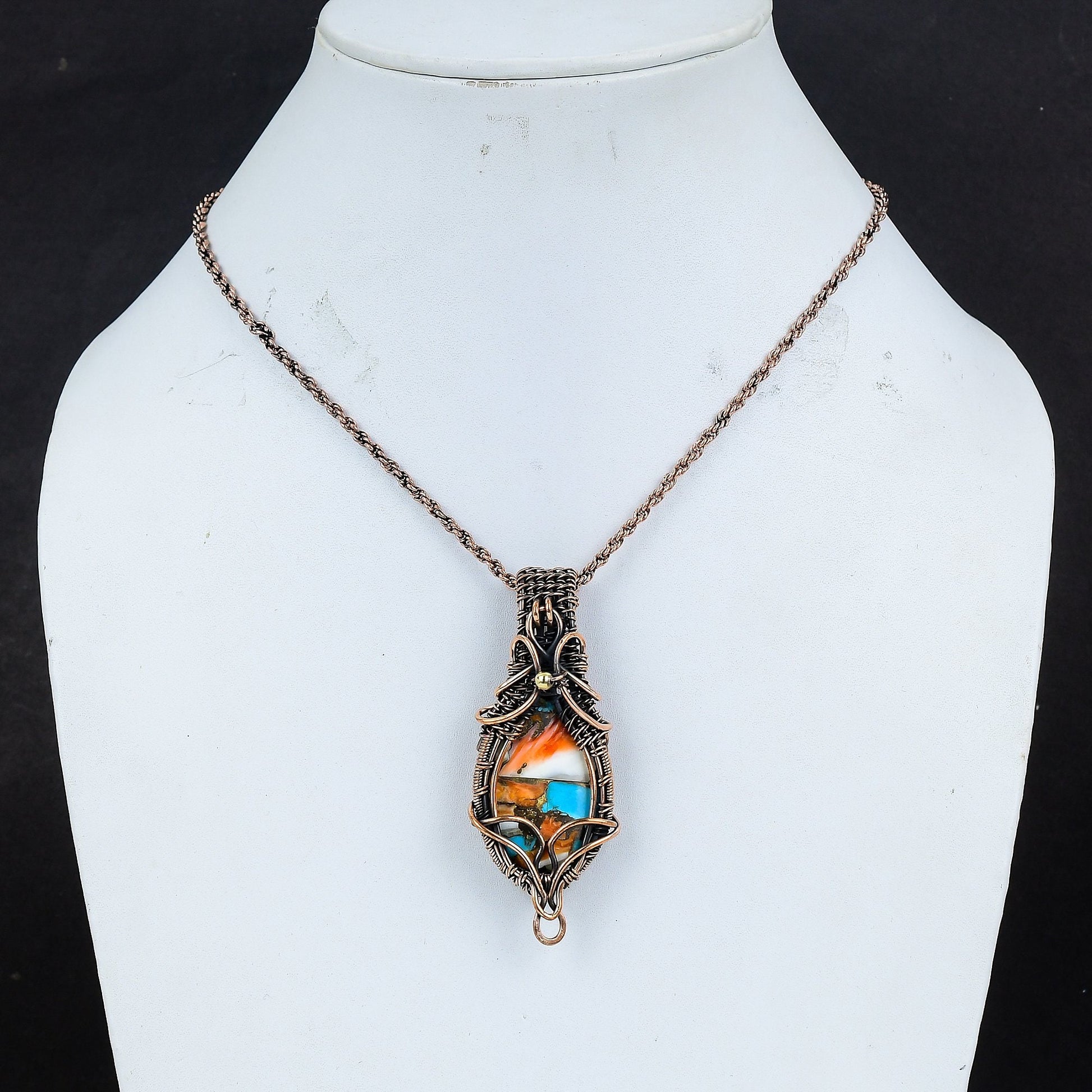 Design: This unique piece showcases an eye-catching gemstone with vivid hues, elegantly wrapped in high-quality copper wire. The intricate wirework creates a captivating frame, enhancing the natural beauty of the stone.