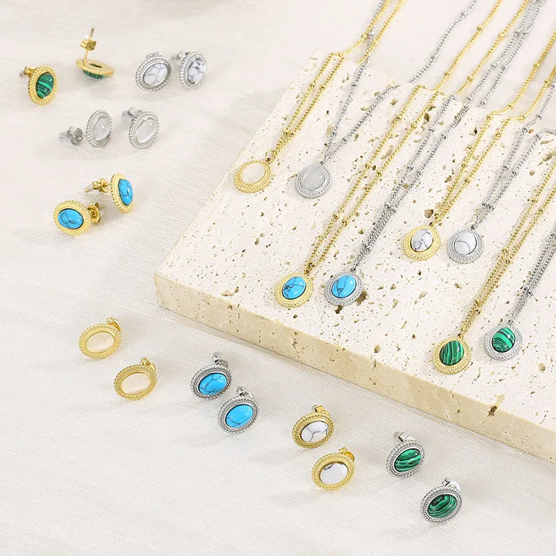 Elevate your style with our exquisite collection of pendant necklaces and stud earrings. Crafted with precision, each piece features a stunning combination of gold and silver tones, perfectly paired with vibrant gemstones.