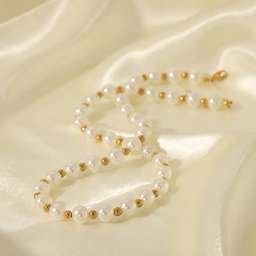 Embrace elegance with this exquisite pearl and gold bead necklace that effortlessly combines classic style with a modern twist.
