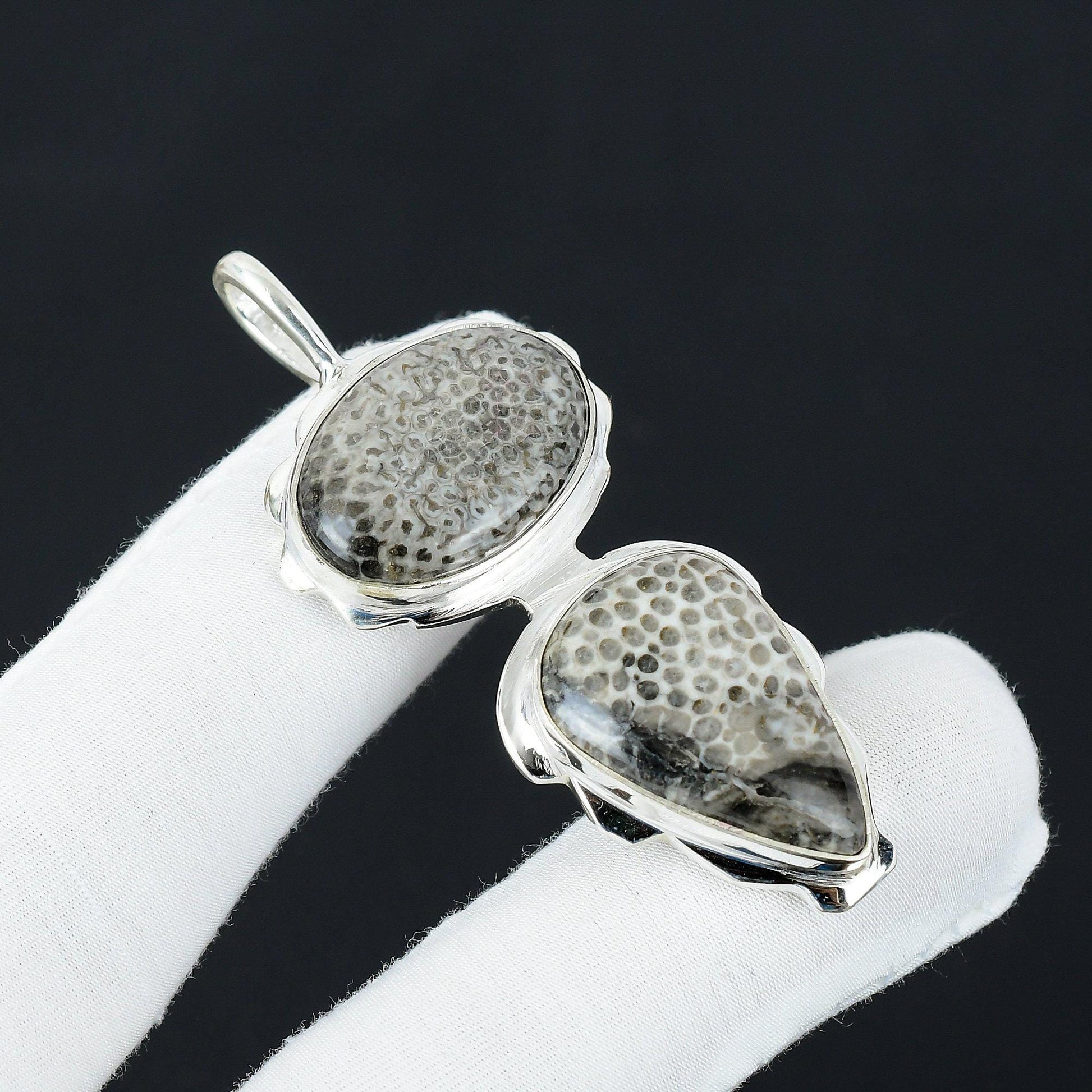 Enhance your style with this exquisite double-stone pendant, expertly crafted to perfection.