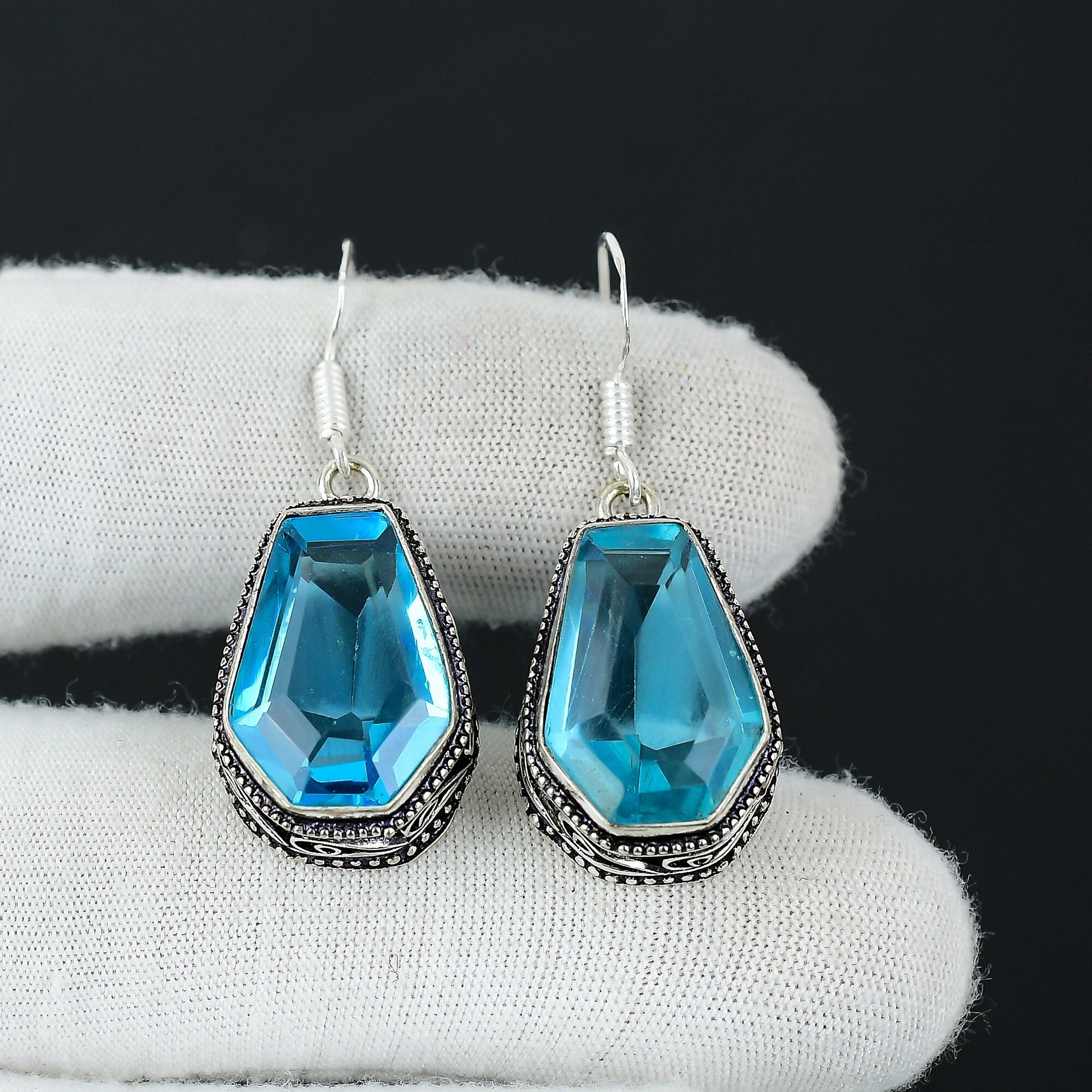 Beautifully crafted with a dazzling blue gemstone, these earrings offer a touch of sophistication and charm to any outfit.