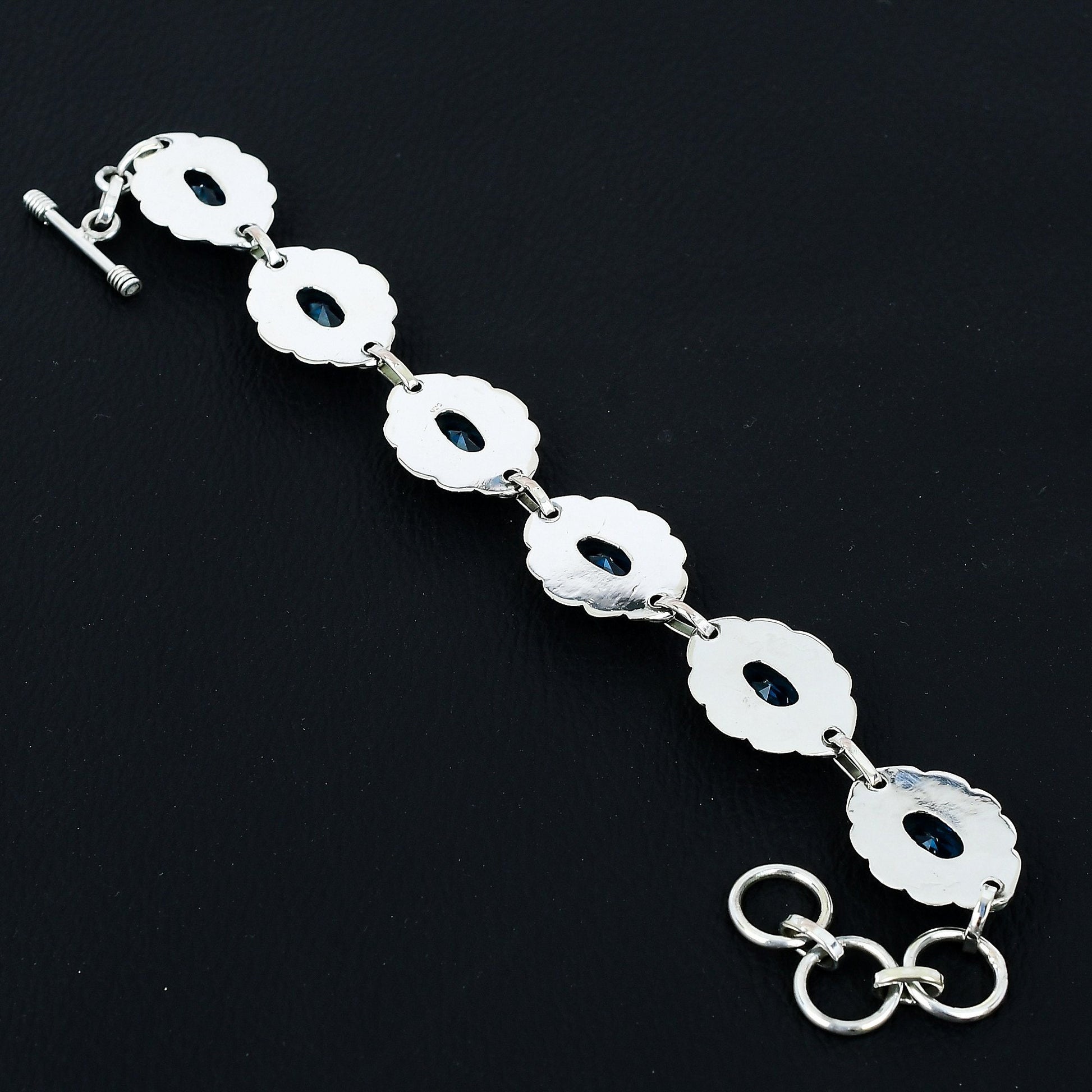 Introducing our exquisite Blue Gemstone Silver Bracelet, a masterpiece of elegance and craftsmanship.