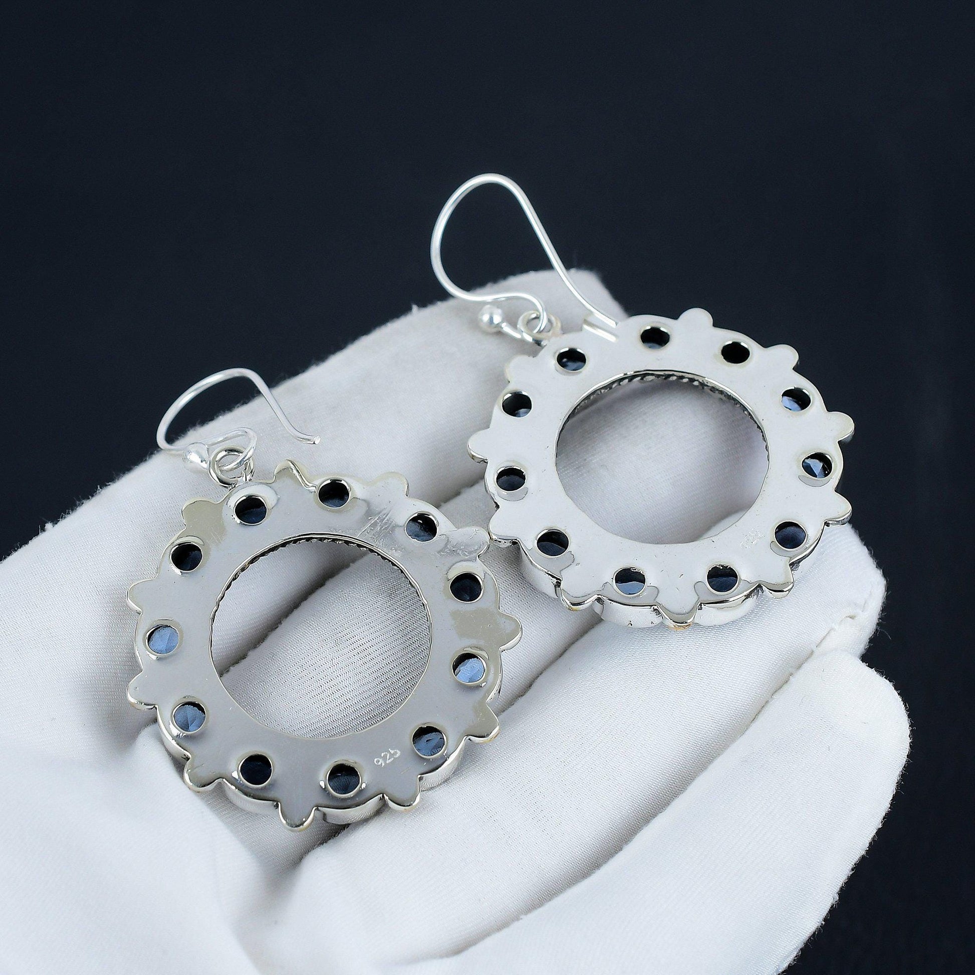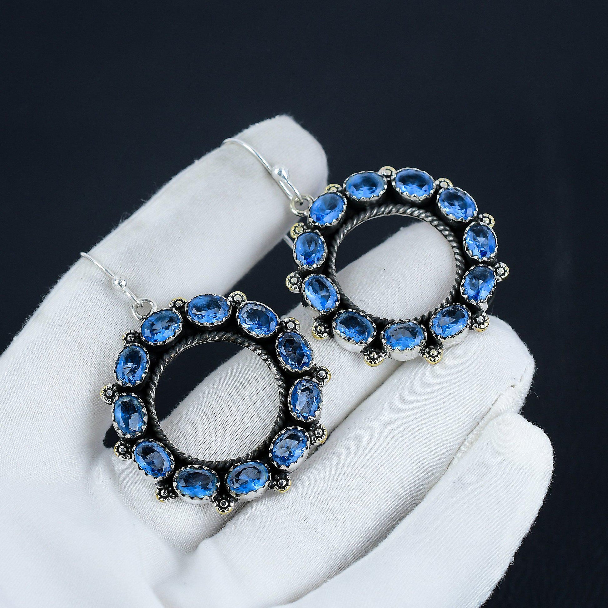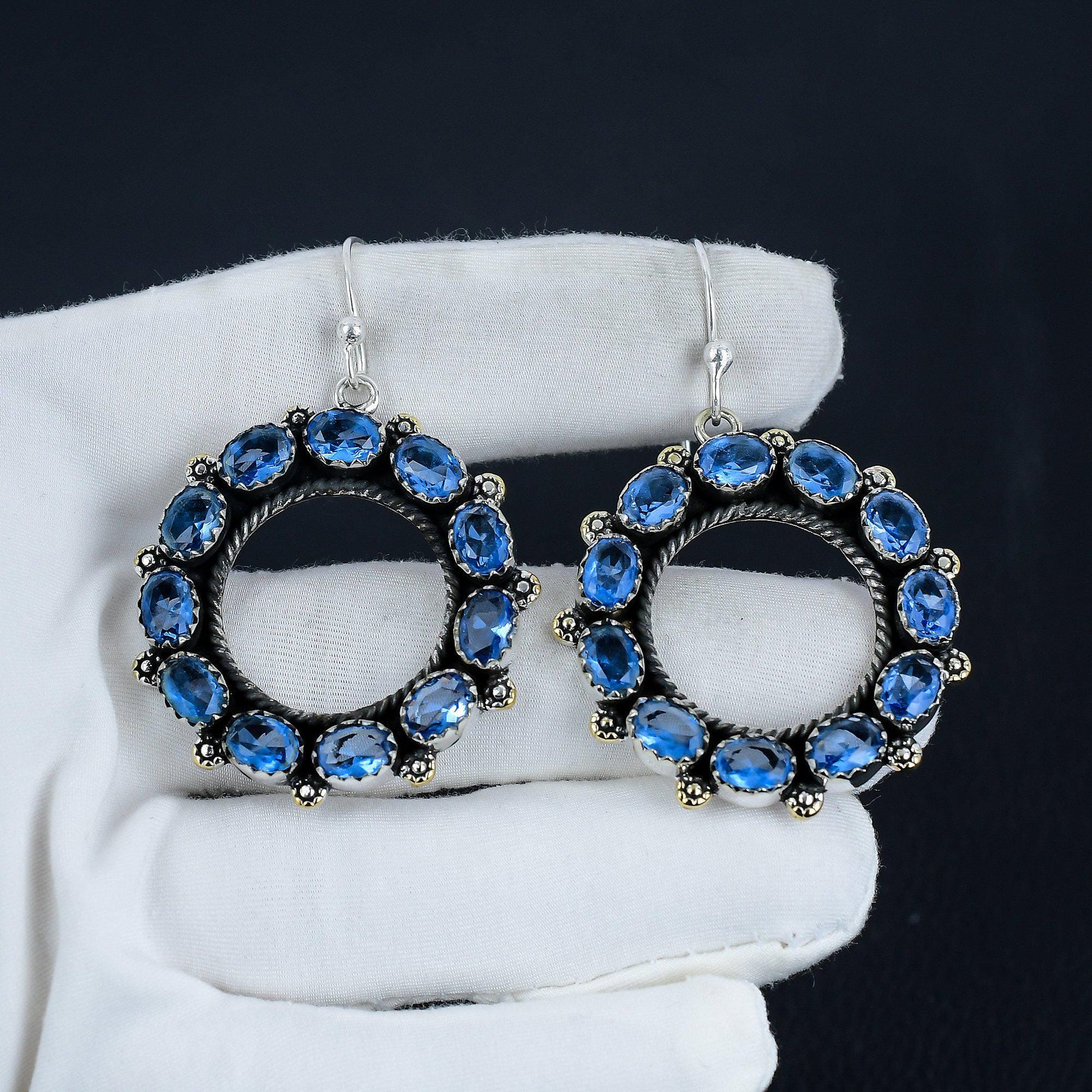Introducing our exquisite Circular Blue Gemstone Earrings, a stunning addition to any jewelry collection.