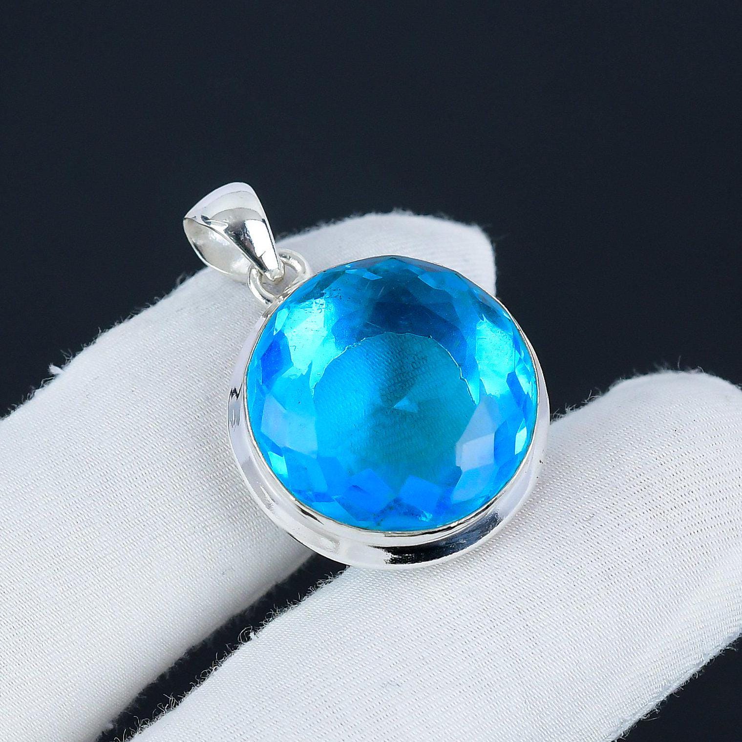 Featuring a mesmerizing blue gemstone, this pendant radiates a captivating sparkle, making it an eye-catching addition to any jewelry collection.