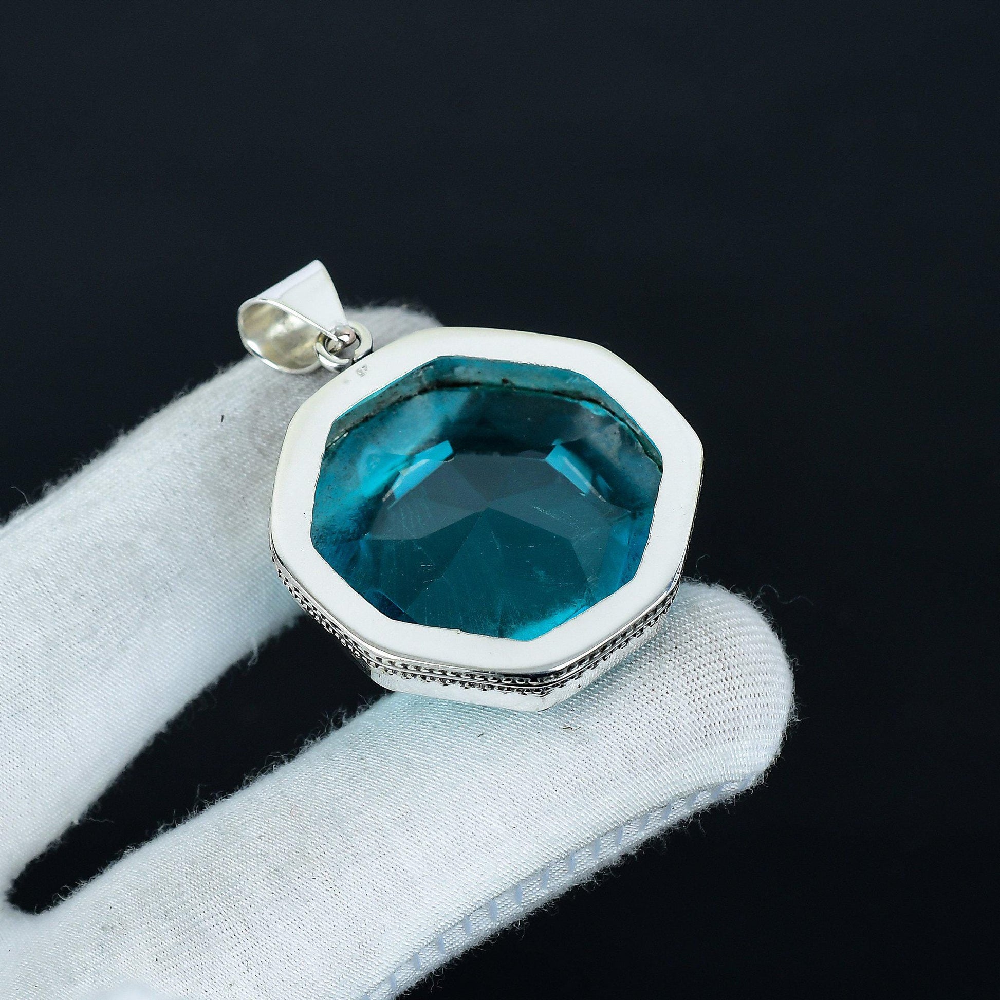 Introducing our exquisite Octagonal Blue Crystal Pendant—a perfect blend of elegance and style.