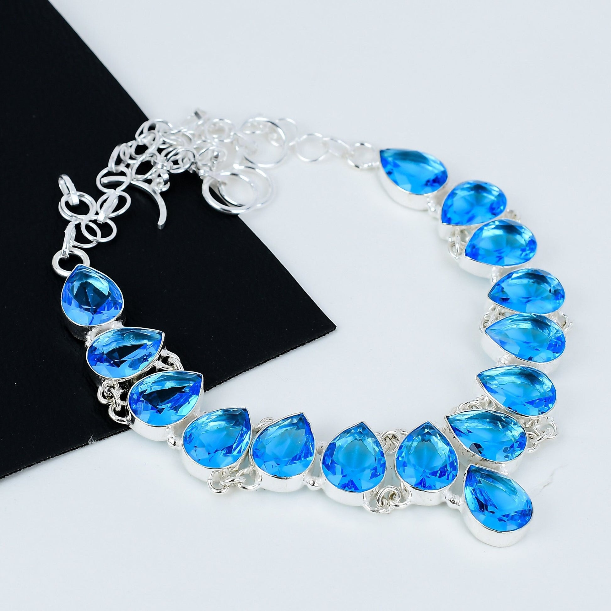 Elevate your elegance with this stunning blue gemstone necklace, a true statement piece for any occasion.