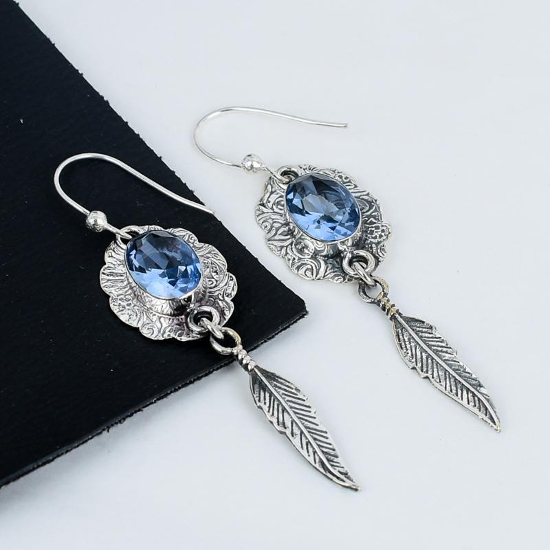 Featuring a stunning blue gemstone that catches the light with every move, these earrings are set in beautifully detailed silver-tone metal, adding a touch of vintage allure to your ensemble.