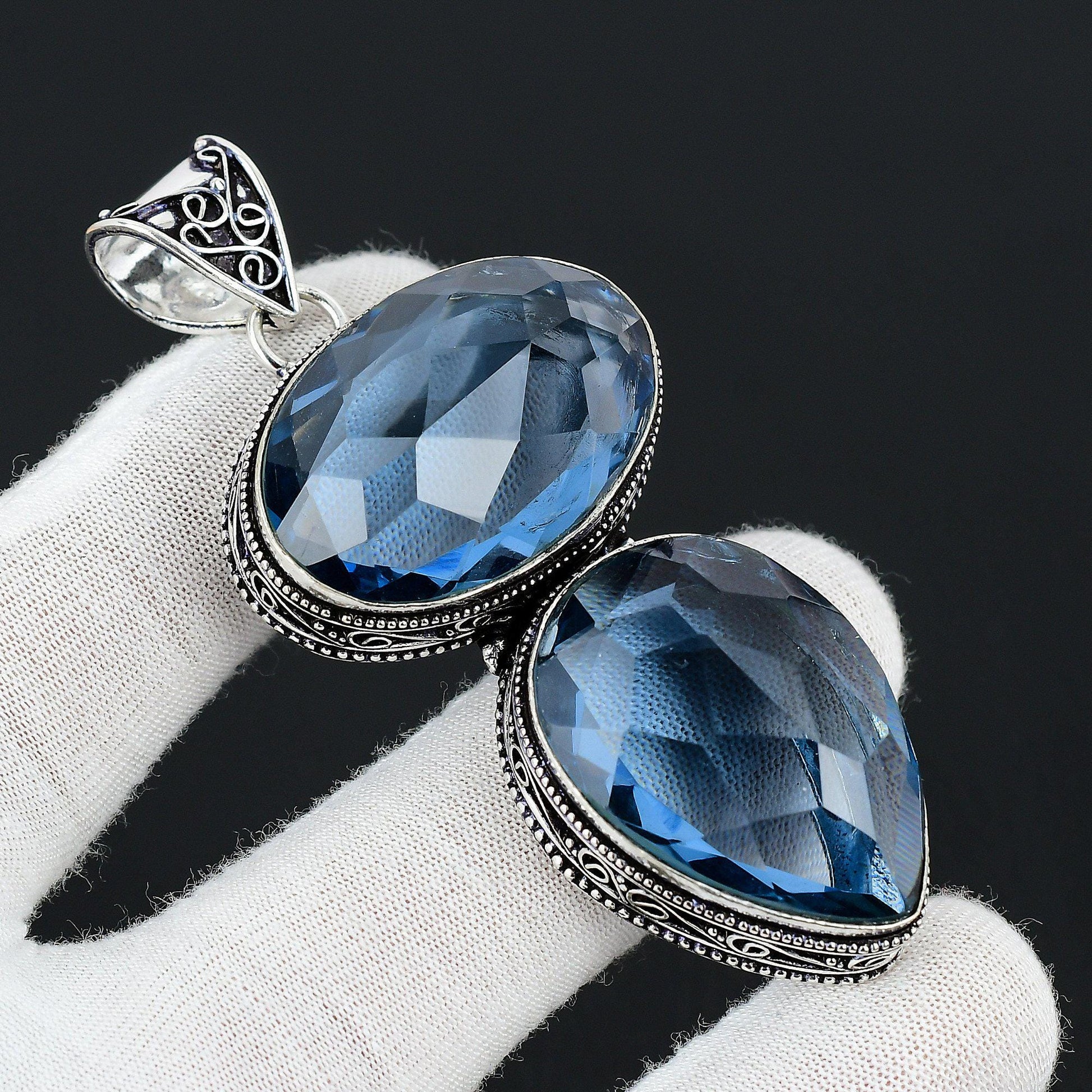 Unveil the allure of elegance with our exquisite blue gemstone pendant.