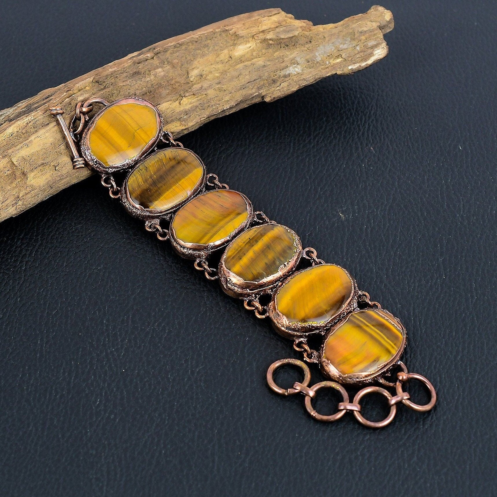 Introducing our exquisite handcrafted bracelet, featuring striking tiger's eye stones that capture the essence of earthy elegance.