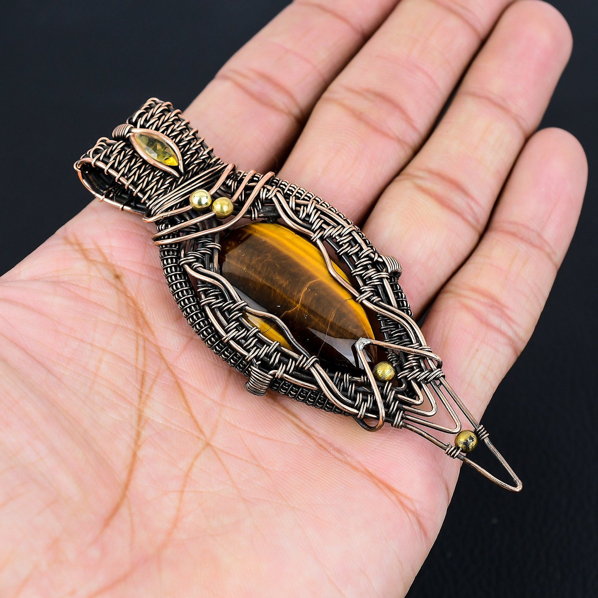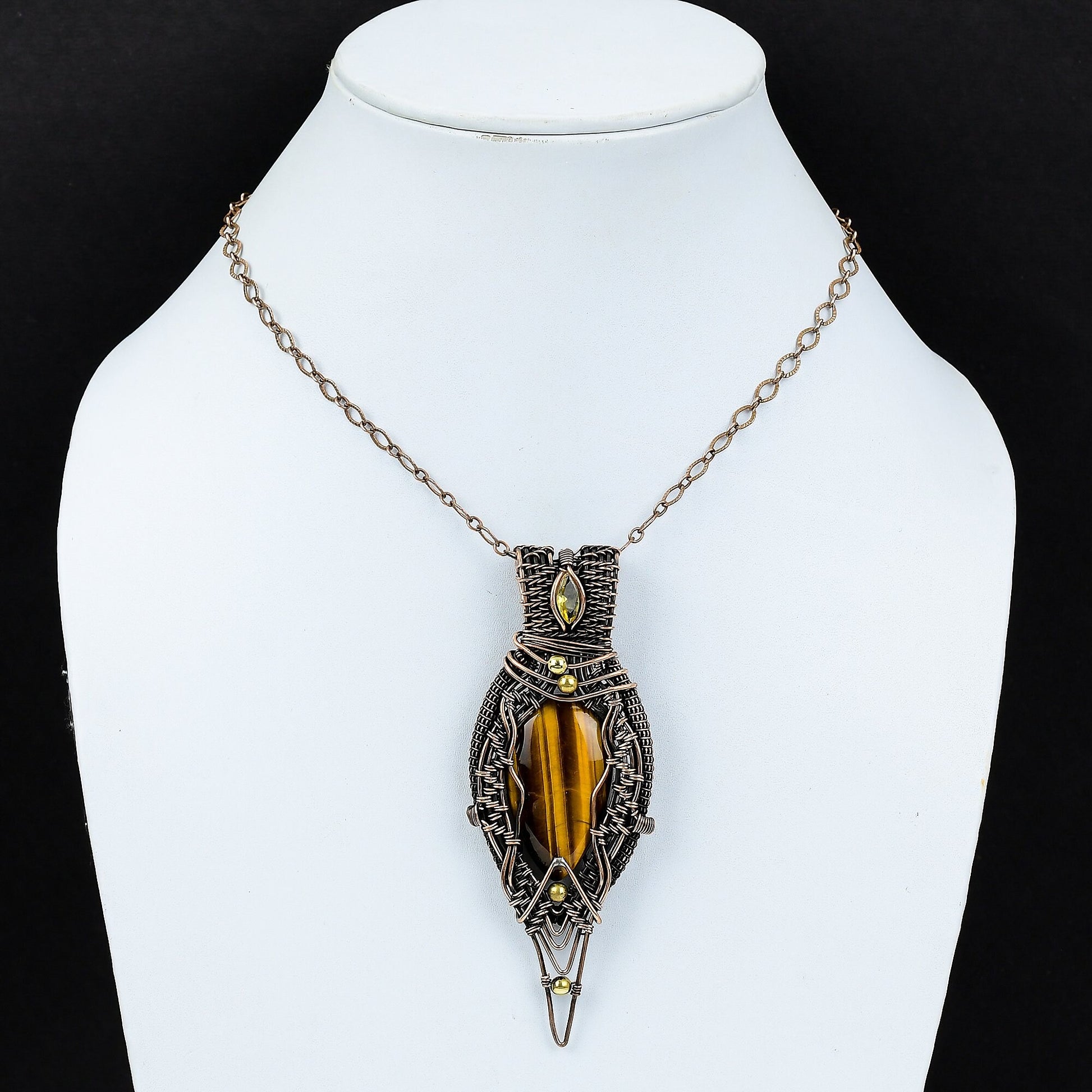 Discover the enchanting allure of our handcrafted wire-wrapped pendant, featuring an exquisite tiger's eye gemstone at its heart. This unique piece is meticulously designed with intricate copper wirework, blending elegance with artisan craftsmanship.