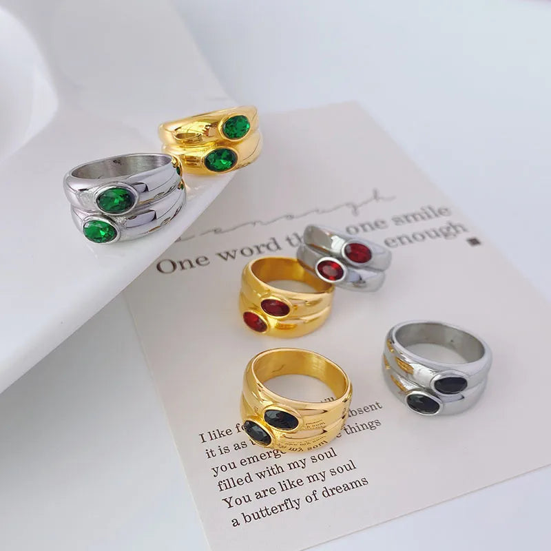Discover the allure of elegance with our exquisite Double Gemstone Ring Collection. These rings feature twin gemstones, skillfully set in a sleek band, available in both gold and silver tones.