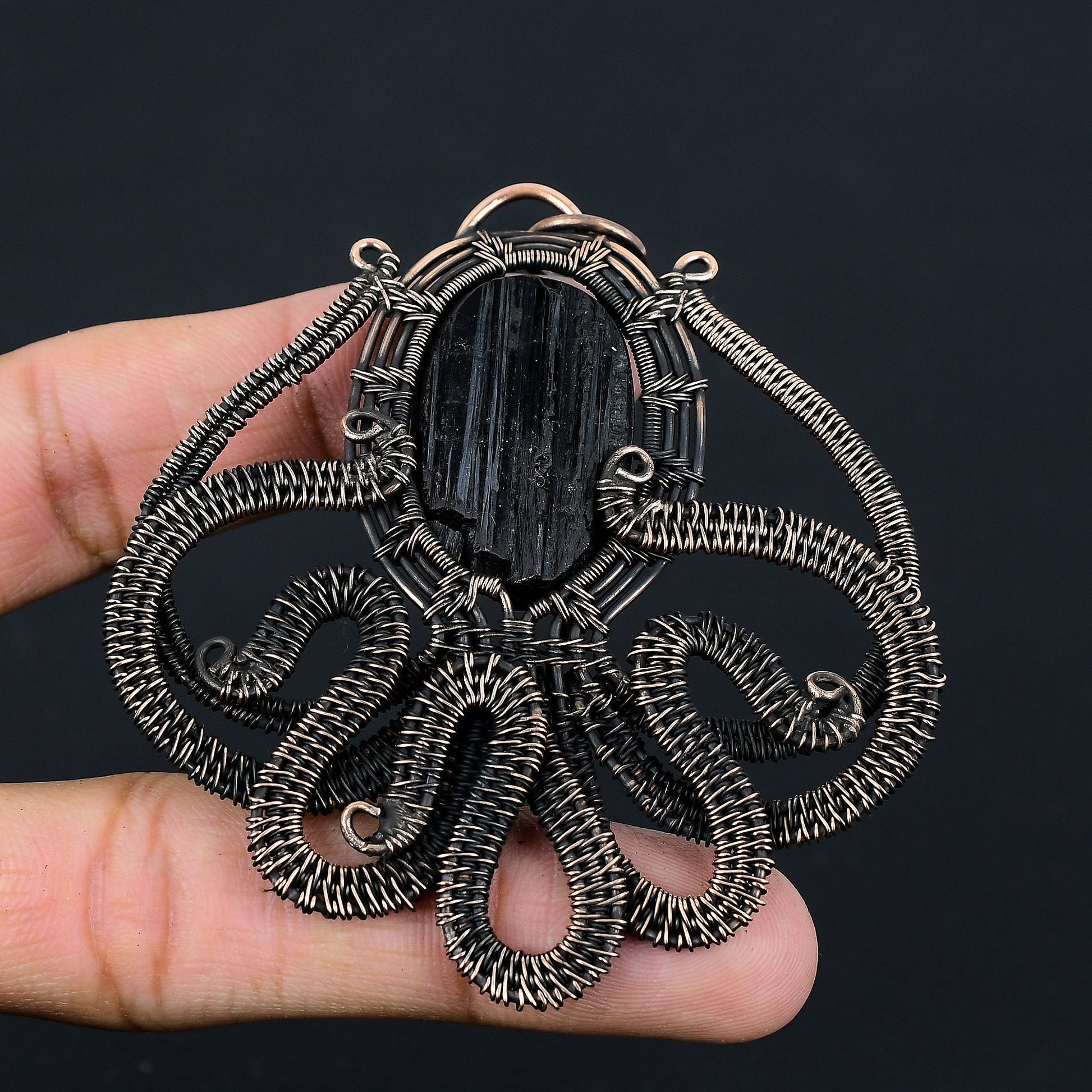 Discover the captivating allure of our Handcrafted Wire-Wrapped Black Stone Pendant.