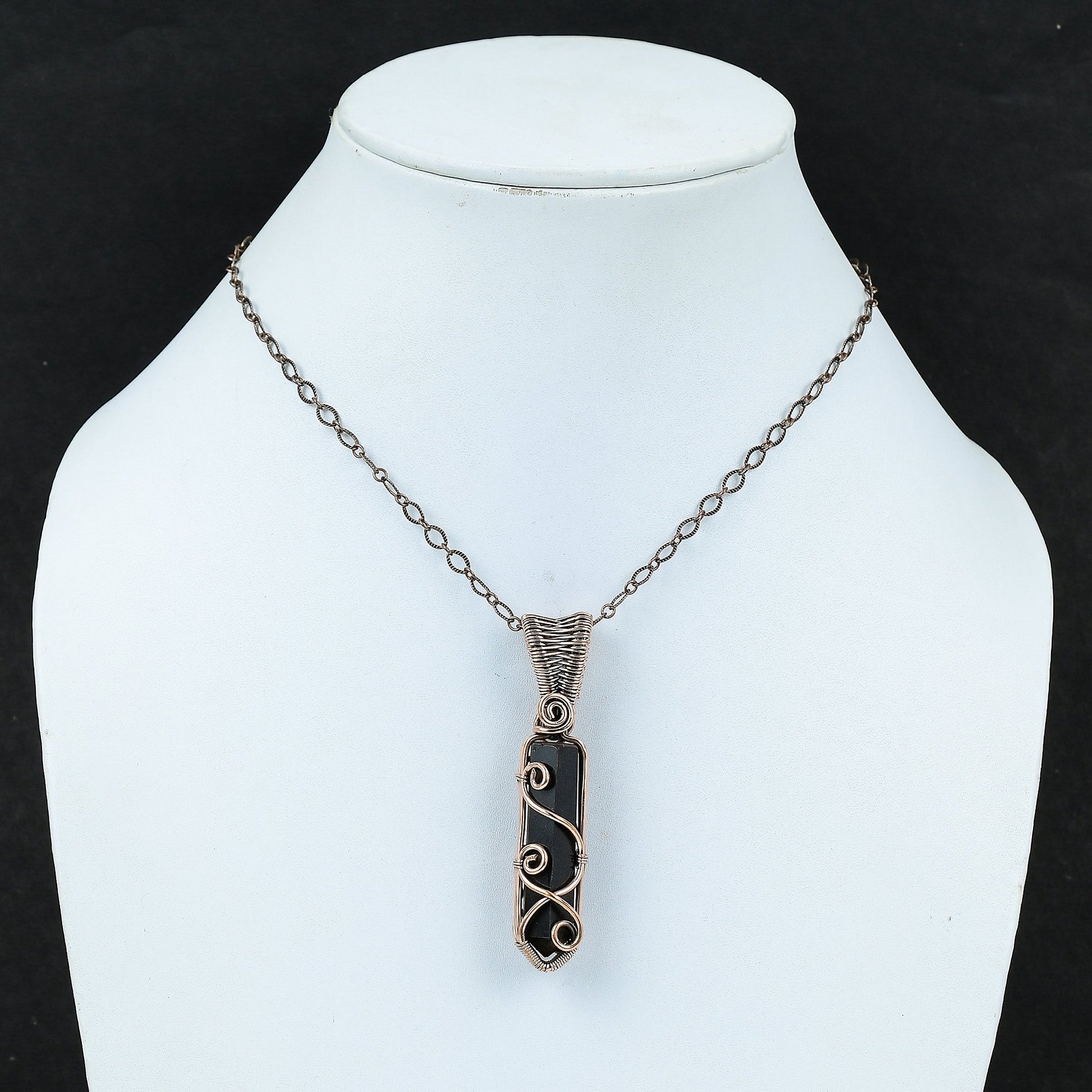Enhance your style with this exquisite handcrafted pendant, skillfully wrapped in elegant copper wire.