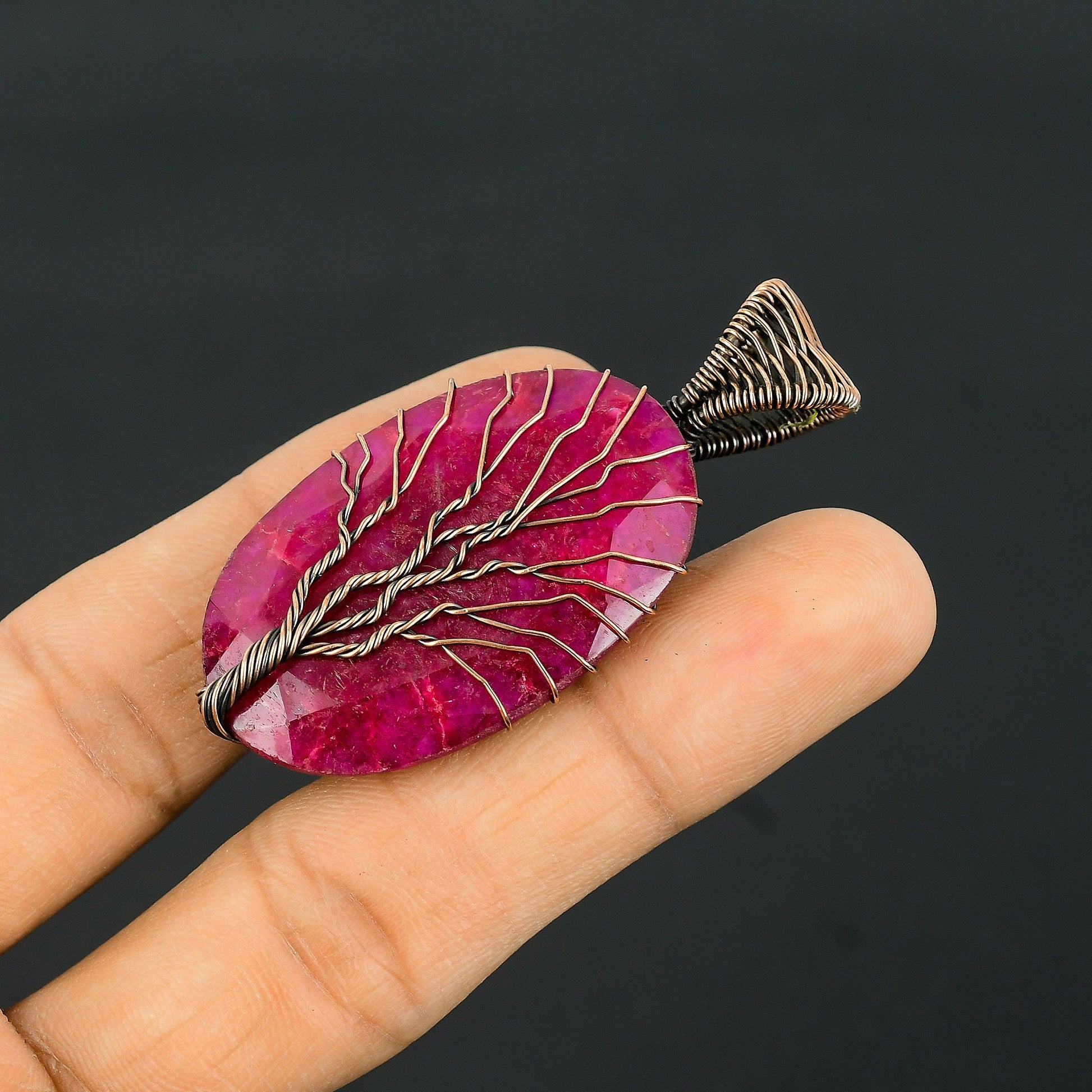Embrace the enchanting allure of nature with our exquisite Tree of Life Pendant. This stunning piece features a deep magenta gemstone, encircled by intricate wire artistry that beautifully forms the branches of a tree, symbolizing growth and connection.
