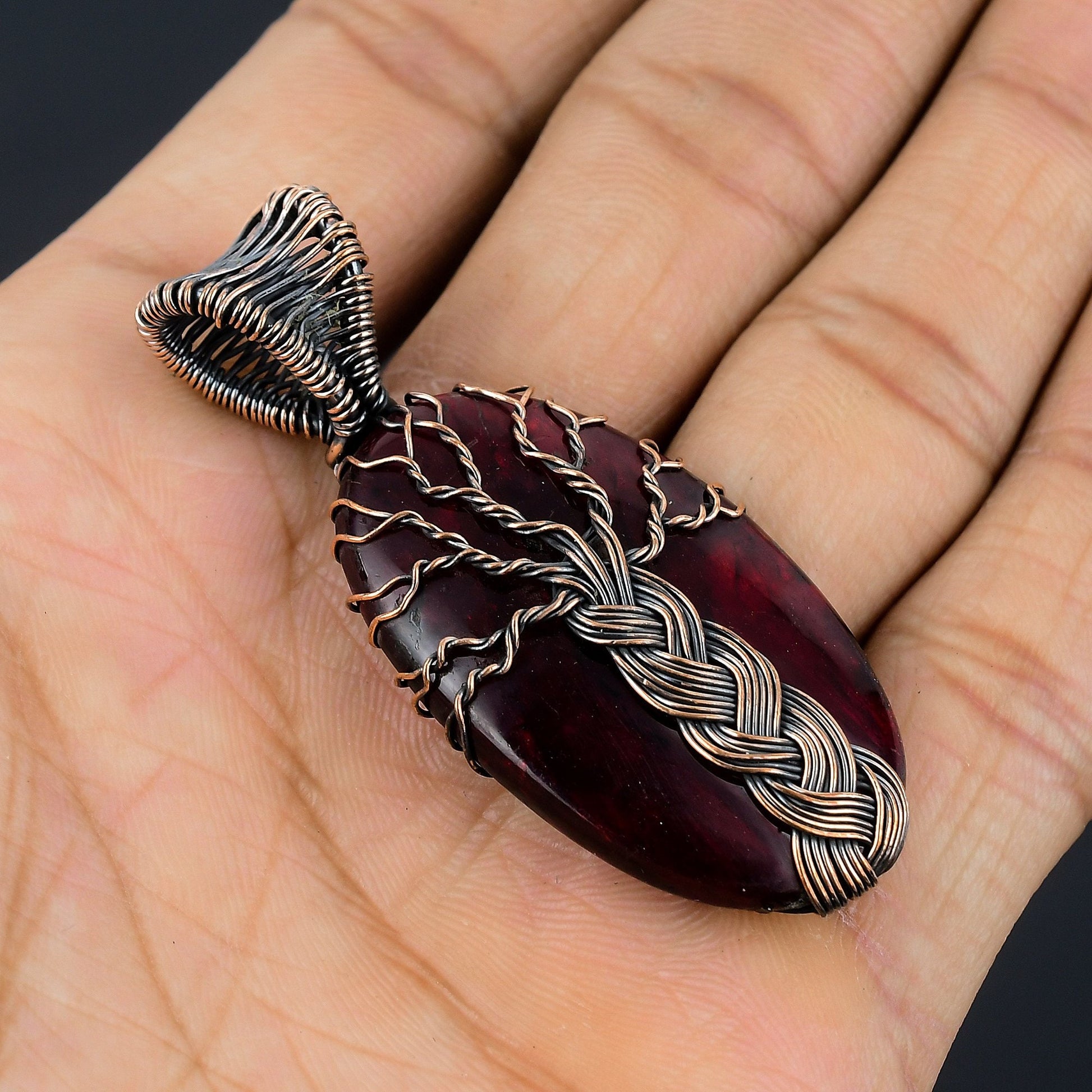 Discover the enchanting allure of the Mystical Tree of Life Pendant, a true masterpiece of artisanal craftsmanship. This stunning piece features a deep red gemstone, capturing the essence of elegance and sophistication.