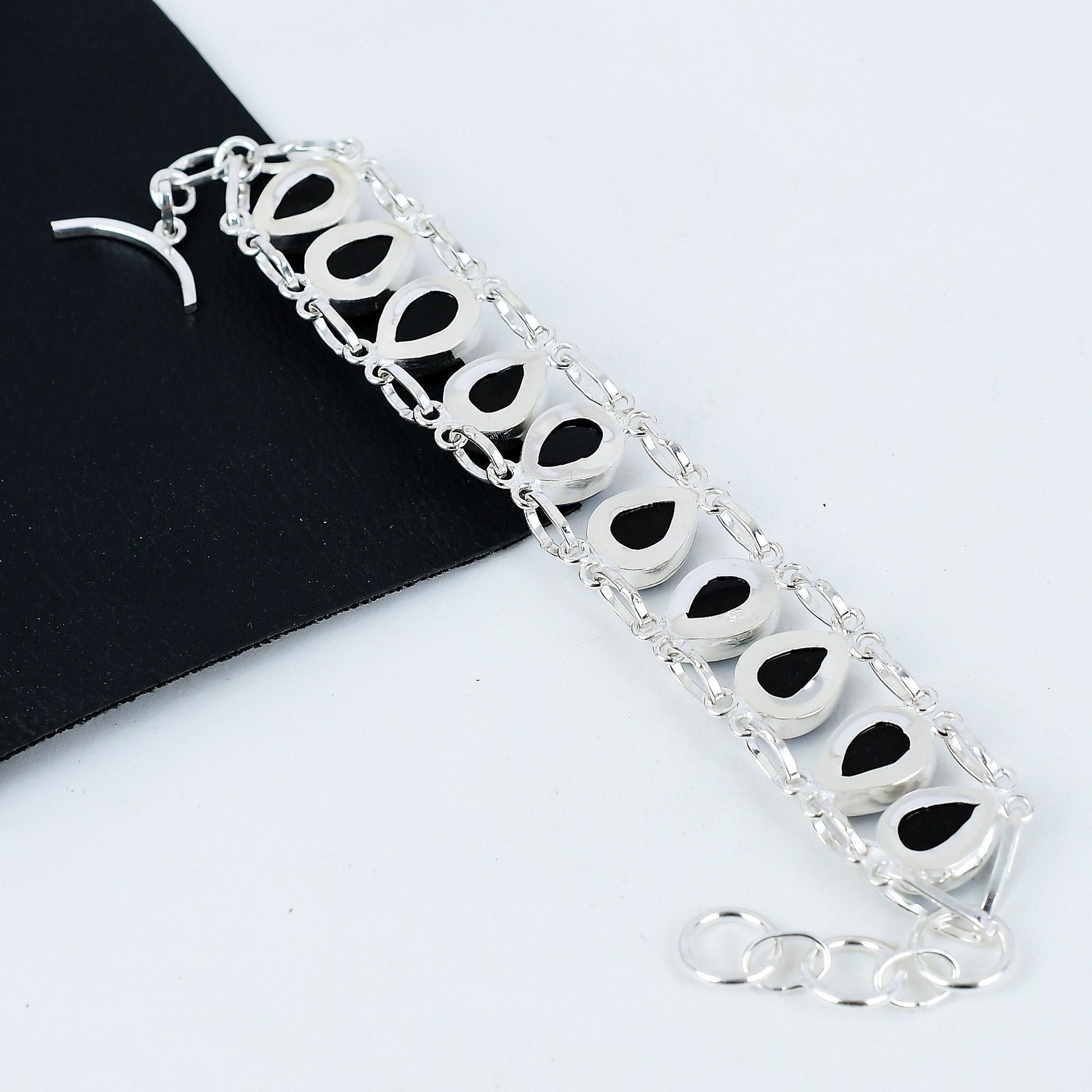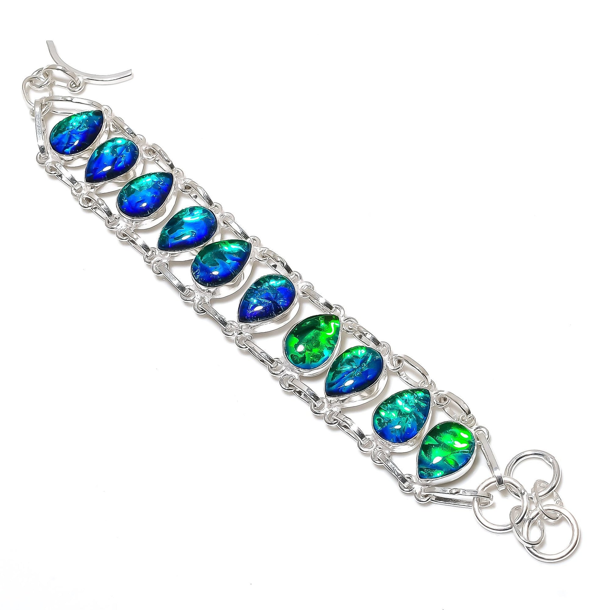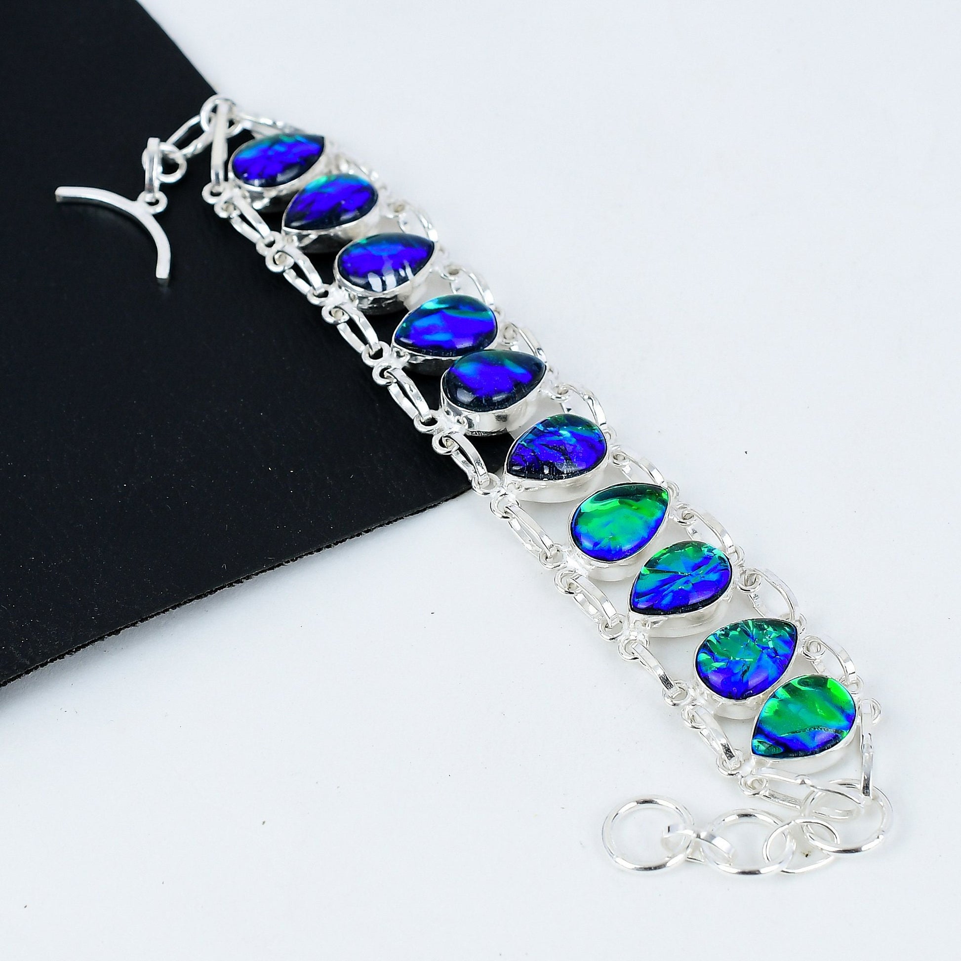 Experience the allure of elegance with our captivating blue and green teardrop bracelet. Each piece is meticulously crafted, featuring exquisite stones set in a polished silver chain.